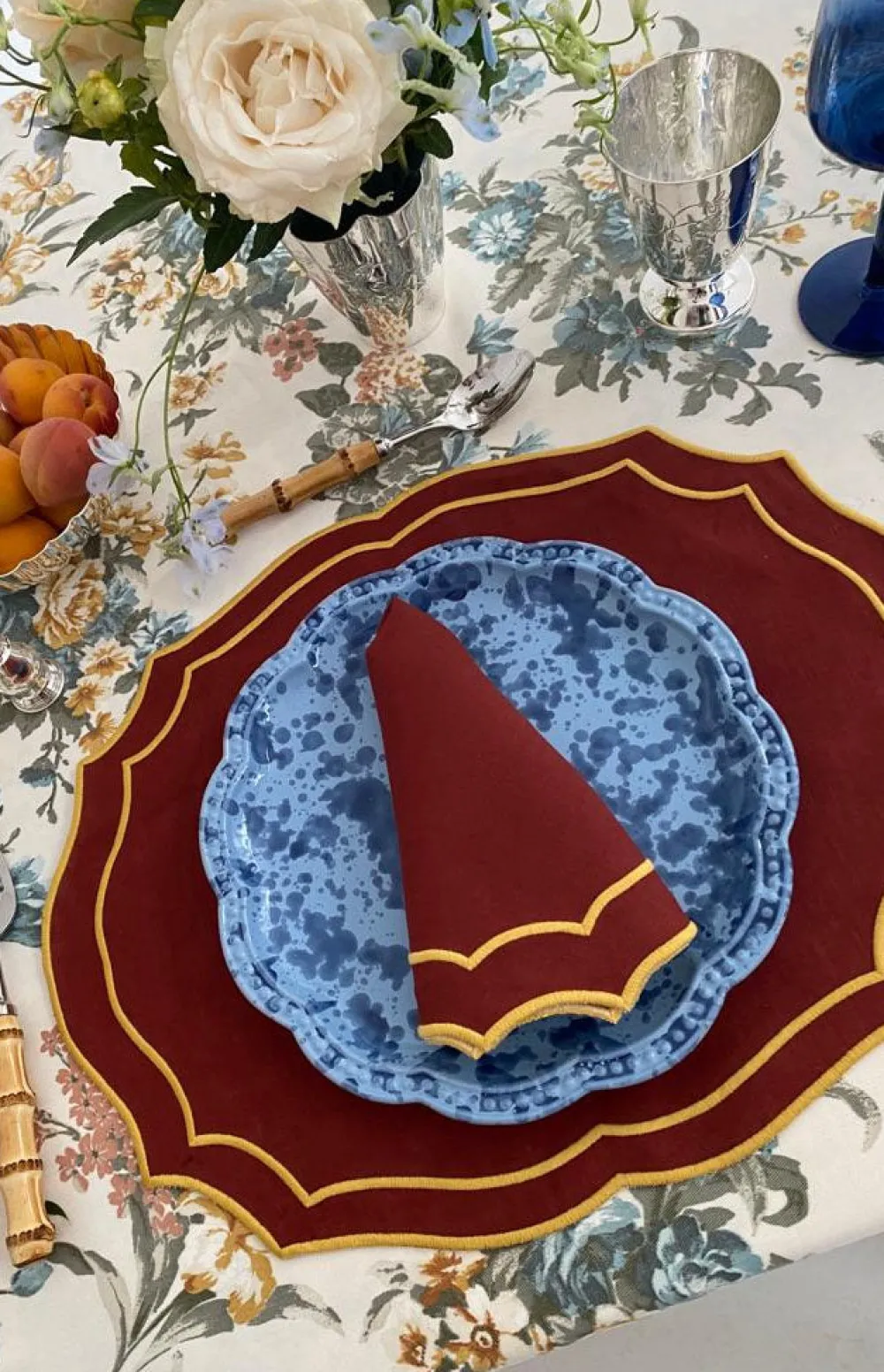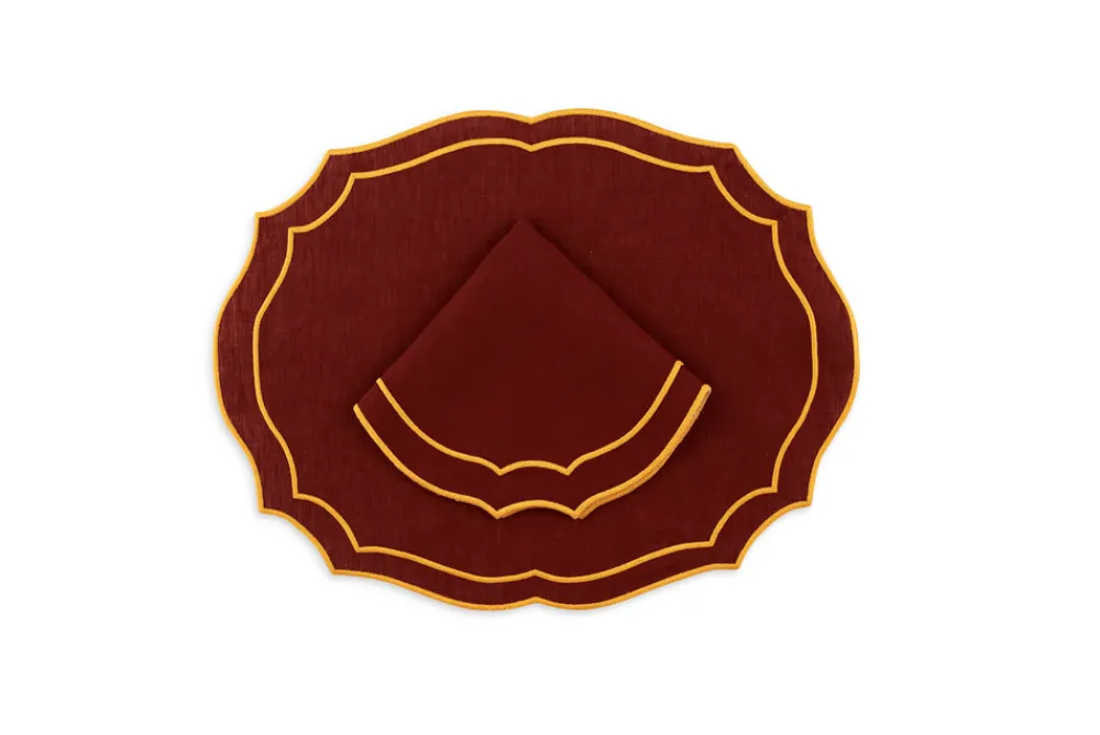 To enliven your tabletop and the conversation, look to Loulou La Dune. Based in Istanbul, Aylin Cinarli Duna’s architectural background provides the outlook for the brand’s luxury linens and beautiful hand embroidery. Her embrace of unique artisanship, and only the finest materials, adds elements refined craftsmanship to your bedroom, bathroom, kitchen and living spaces. Perfect for family gatherings and dinner parties, the Emma Placemat in Brick features an attractive dark red coloration, trimmed with a fine shade of maize. Elegant and effortless.