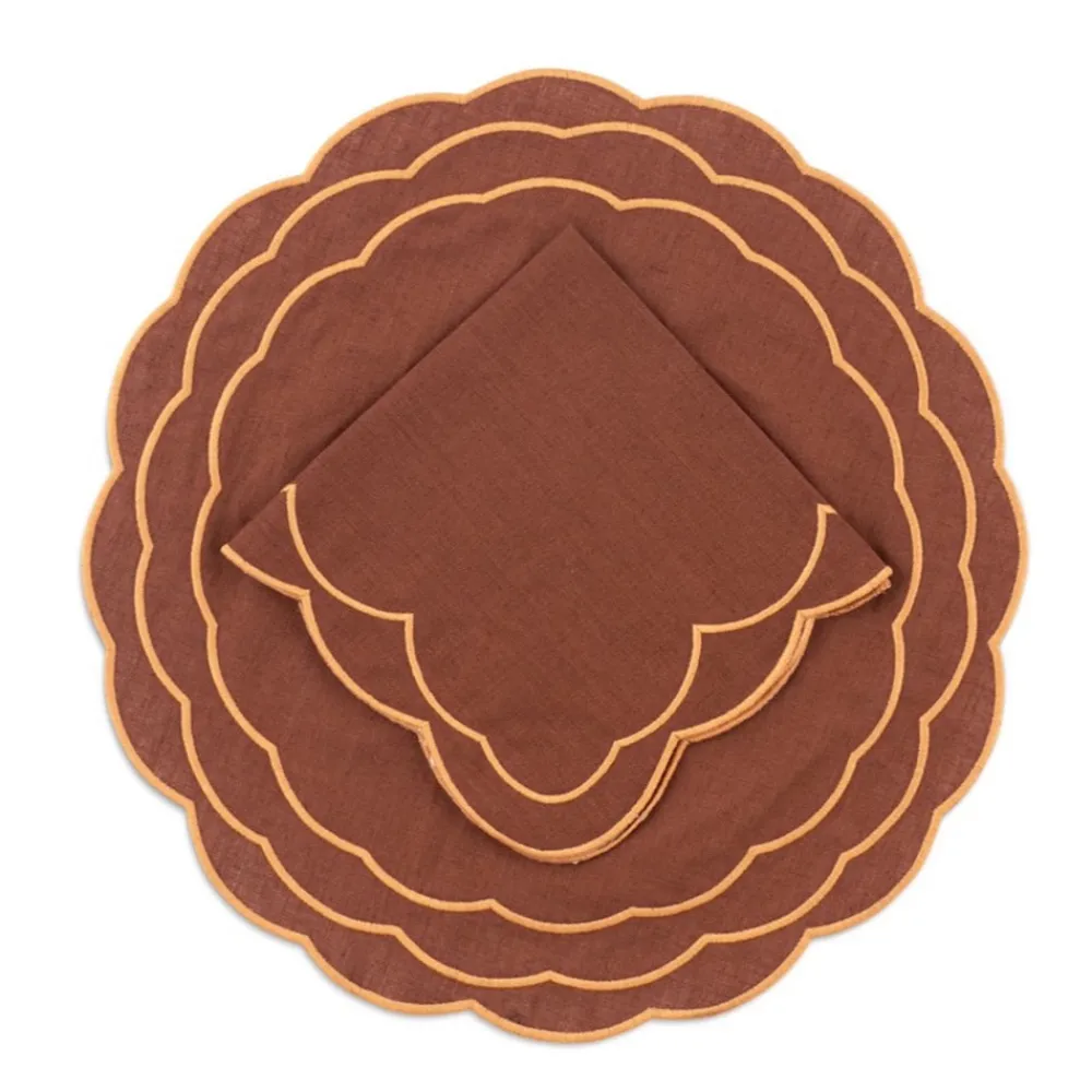 To liven up the table and the conversation, look to Loulou La Dune. Based in Istanbul, La Dune is an artisan with an architecture background who specializes in luxury linens. Perfect for family gatherings and dinner parties, the Sofia napkin features marigold hand embroidery that may inspire a floral arrangement of the same vein.
