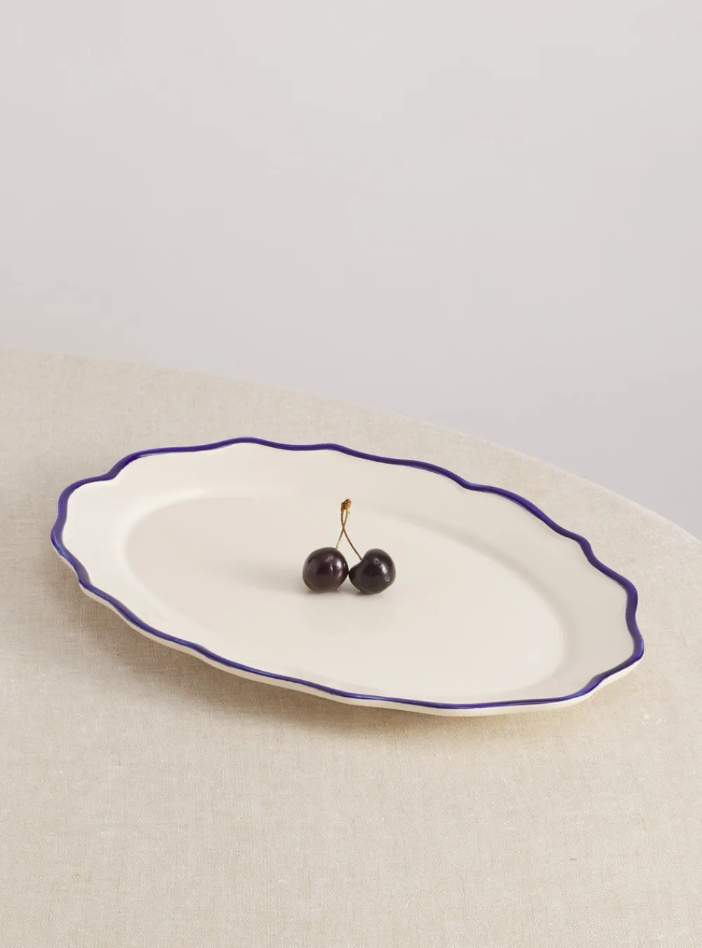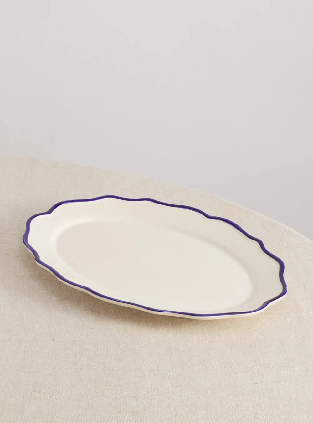 A new ceramics brand, designed in New York and luxuriously crafted in Portugal, Maison Madison brings a European sense of relaxed elegance to every table with their effortless, yet bold, hand-painted dinnerware. Decorous yet unfussy, the Jane Oval Platter is an ideal conduit for a family-style meal, or for serving larger mains, like your killer dorade, roast chicken, or t-bone. The sea blue rim acts as a frame to elevate your homemade masterpieces, and takeout, too.