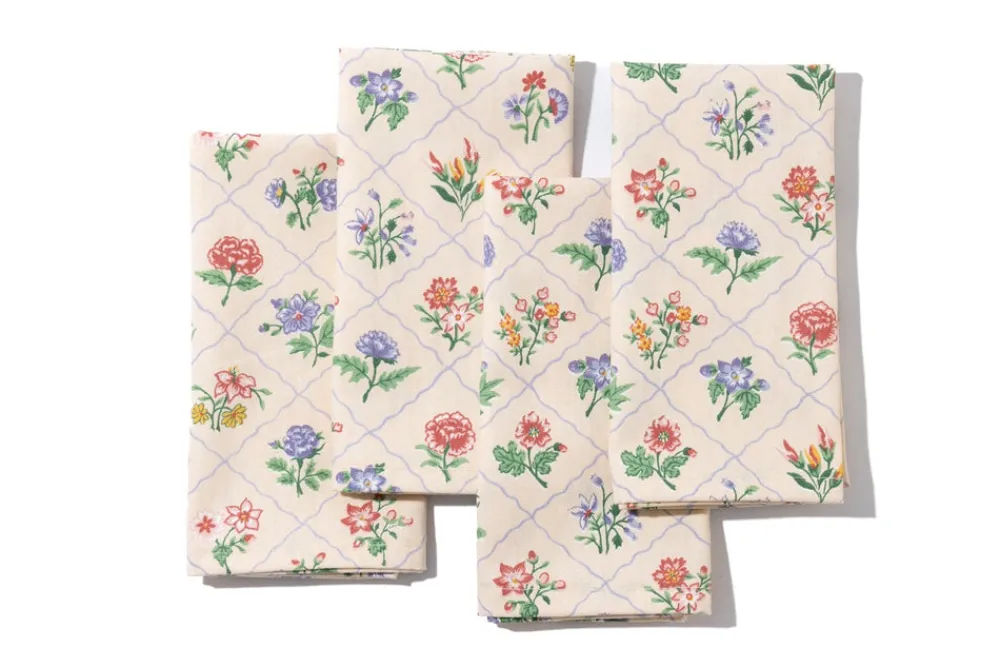 Maria Louise Cottage is a cozy haven steeped in history and charm. Once a humble milk room from the early 1900s, this space has been lovingly transformed into a workshop of creativity and craftsmanship. Every item here is meticulously handmade, infused with care and attention to detail. We use vintage fabrics, each carrying its own story, which means many of our creations are one-of-a-kind treasures available in limited quantities. The Amoureaux House Napkins in Beige, Set of 4 are made from vintage Schumacher fabric. Their effortless elegance adds a beautiful touch to any table.
