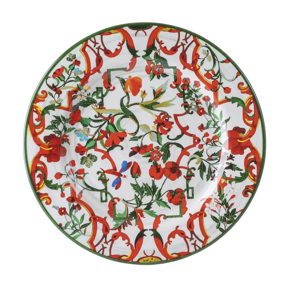 Mario Luca Giusti brings timeless Italian elegance to everyday living with pieces that fuse classical form and contemporary innovation. Crafted from luminous synthetic crystal, each design transforms functional tableware into a visual statement—equally suited to indoor and outdoor use. The Lillybet Dinner Plate features a colorful composition of greens, reds, and vibrant pops of blue, yellow, and orange. Its lively floral-inspired print brings warmth and character to both casual meals and open-air occasions.