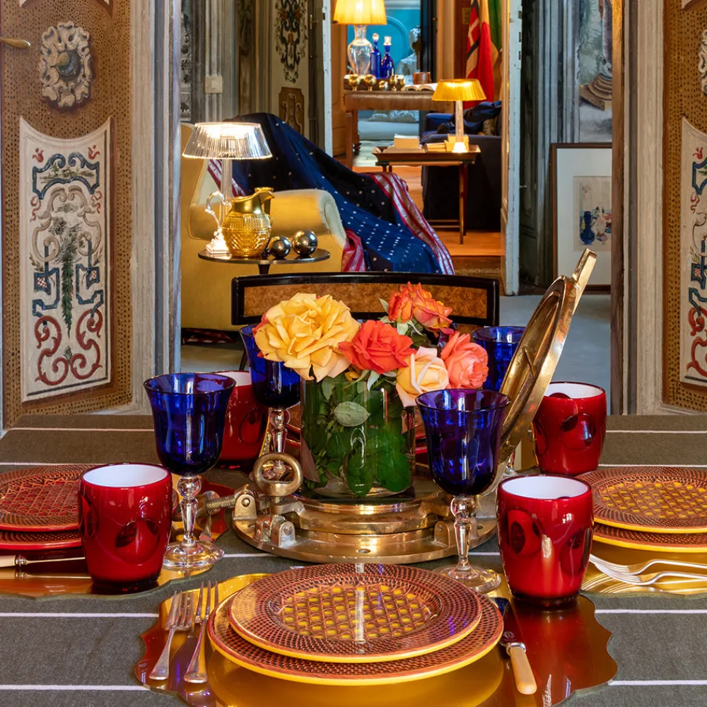 Mario Luca Giusti brings timeless Italian elegance to everyday living with pieces that fuse classical form and contemporary innovation. Crafted from luminous synthetic crystal, each design transforms functional tableware into a visual statement—equally suited to indoor and outdoor use. The Fisheye Tumbler adds a cheerful burst of color to any tablescape. With its textured surface and vibrant palette, this versatile acrylic piece combines everyday function with playful sophistication.