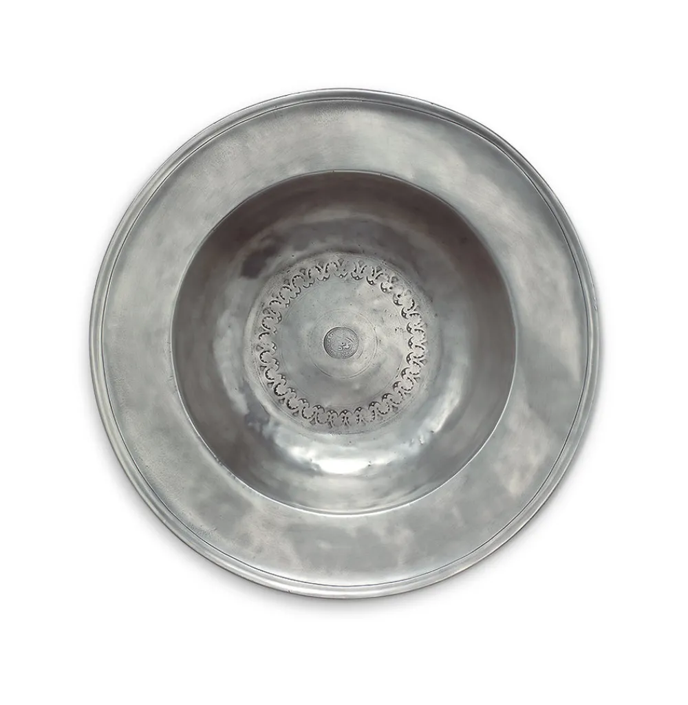 Created in 1995, Match single-handedly introduced America to the beauty of Italian pewter. Founder David Weiss carefully selects the finest workshops to produce effortless, versatile designs for kitchen, tabletop, and home interiors. Featuring a graceful extra wide rim, the engraved ,all-pewter Wide Rimmed Bowl makes an elegant centerpiece for all your festivities. We love it filled with seasonal fruit.