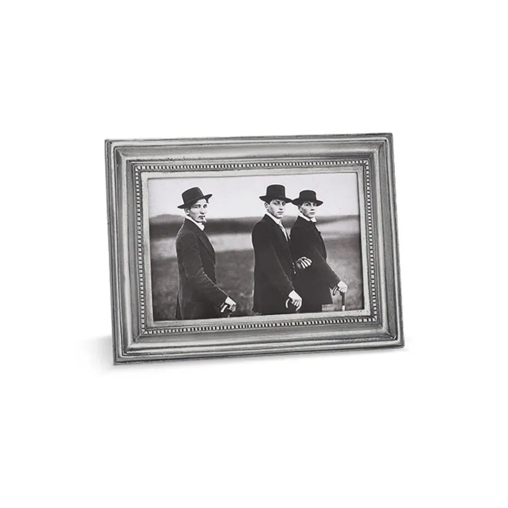 The Toscana Rectangle Frame is a beveled Italian pewter picture frame embellished with an inner border of luxe square beads. Every piece of Match pewter is marked with the manufacturer’s “M” hallmark as well the mark of tin content “95.”