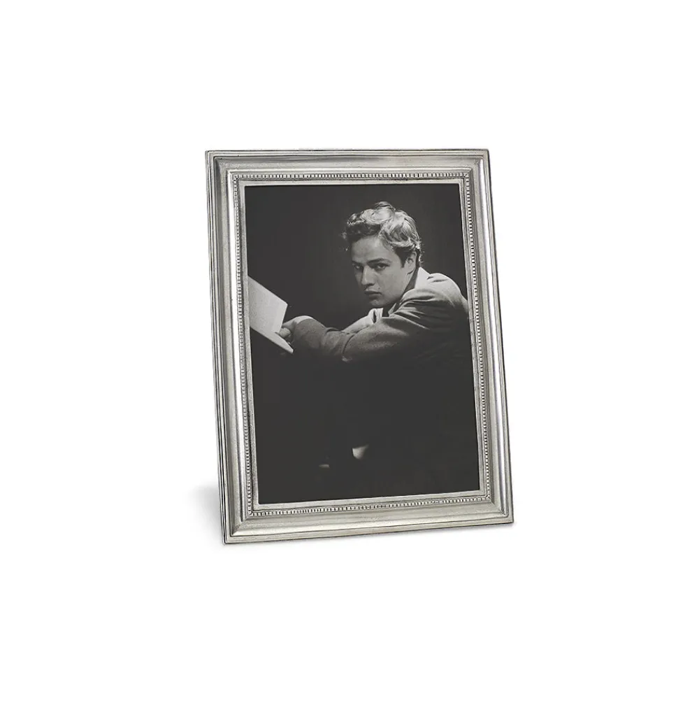 The Toscana Rectangle Frame is a beveled Italian pewter picture frame embellished with an inner border of luxe square beads. A must-have for the ultimate hostess, MATCH pewter—a valuable metal composed of tin, copper, and antimony—is handmade by artisans in Northern Italy. Every piece of Match pewter is marked with the manufacturer’s “M” hallmark as well the mark of tin content “95.”