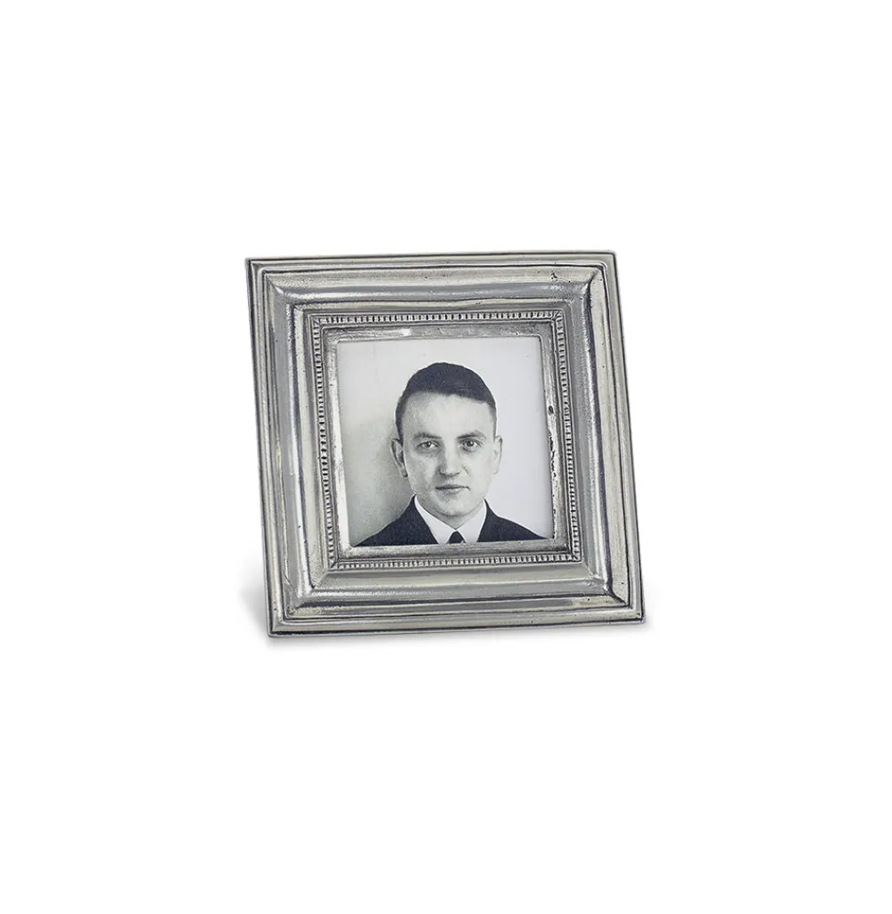 The Toscana Square Frame is a beveled Italian pewter picture frame embellished with an inner border of luxe square beads. A must-have for the ultimate hostess, MATCH pewter—a valuable metal composed of tin, copper, and antimony—is handmade by artisans in Northern Italy. Its classic look complements both traditional and modern place settings and recalls decadent celebrations. Its classic forms harmonize with both traditional and modern settings. Its warm reflections recall celebrations at well-laid tables and storytelling by candelight. Each piece is made with an alloy that is food safe lead-free, FDA approved and requires very little care. Every piece of Match pewter is marked with the manufacturer’s “M” hallmark as well the mark of tin content “95.”