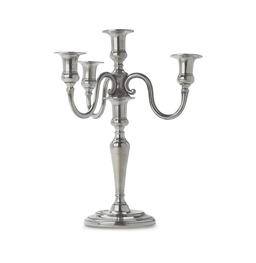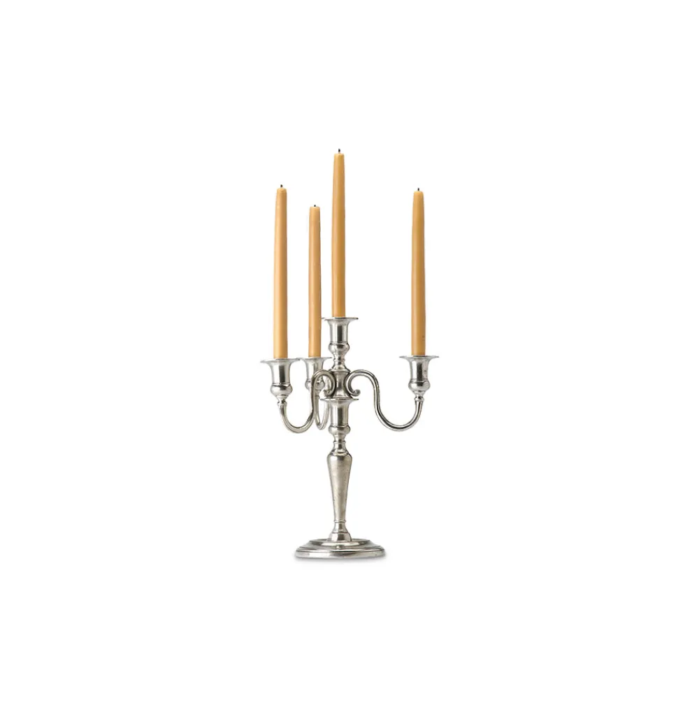 A statement piece for your mantel or tablescape, this 4-Flame Candelabra is an heirloom-worthy item that can be passed down from generation to generation. A must-have for the ultimate hostess, MATCH pewter—a valuable metal composed of tin, copper, and antimony—is handmade by artisans in Northern Italy. The classic look complements both traditional and modern place settings and recalls decadent celebrations.
