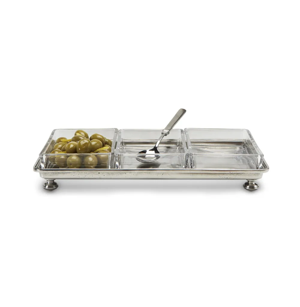 Whether for the presentation of cheese, crudités, or after-dinner coffee, the Footed Crudité Tray is a one-of-a-kind serving piece. A must-have for the ultimate hostess, MATCH pewter—a valuable metal composed of tin, copper, and antimony—is handmade by artisans in Northern Italy. Its classic look complements both traditional and modern place settings and recalls decadent celebrations of the past (talk about heirloom-worthy!) Everything is made with an alloy that is food-safe, lead-free, FDA-approved, and requires very little care—and each piece is marked with the manufacturer’s signature “M.” No matter what you’re serving, MATCH’s carefully considered details make the meal.