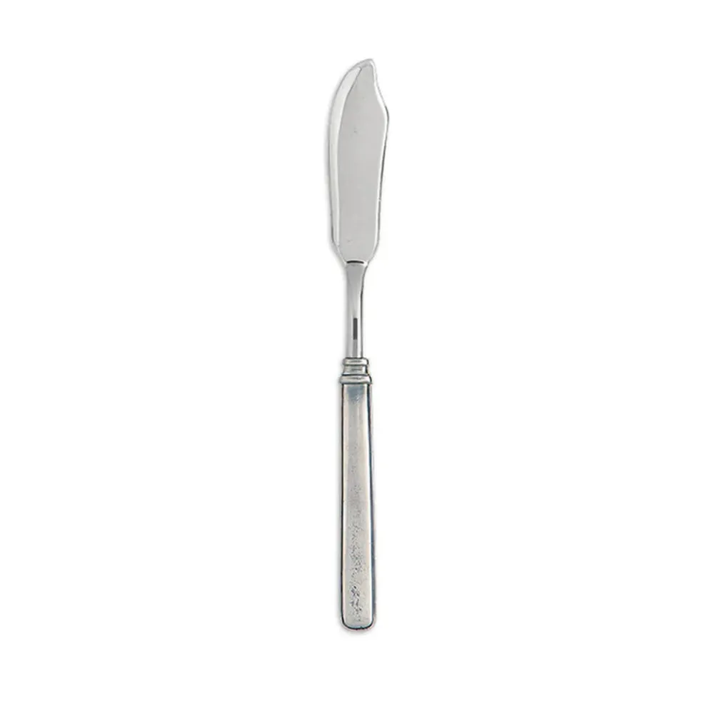 Inviting to the touch, and weighty in the hand, the Gabriella Fish Knife marries the functionality of 18/10 stainless steel with the warmth of pewter. Our handsome designs—including place settings, cheese sets, and condiment and serving spoons—are elegant chameleons, transitioning effortlessly between everyday use and more formal affairs.