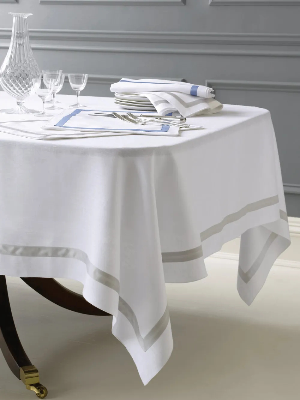 For nearly 100 years and three generations, Matouk has handcrafted luxury linens from the world‚Äôs finest materials. Their dedicated artisans in Fall River, Massachusetts are committed to creating the highest quality, most-loved bed, bath, and table linens for your home.¬†From Matouk’s¬† best-selling collection, the¬†Lowell Tablecloth works with every table setting, standing out with its¬†exquisite tailoring and tasteful sateen trim.