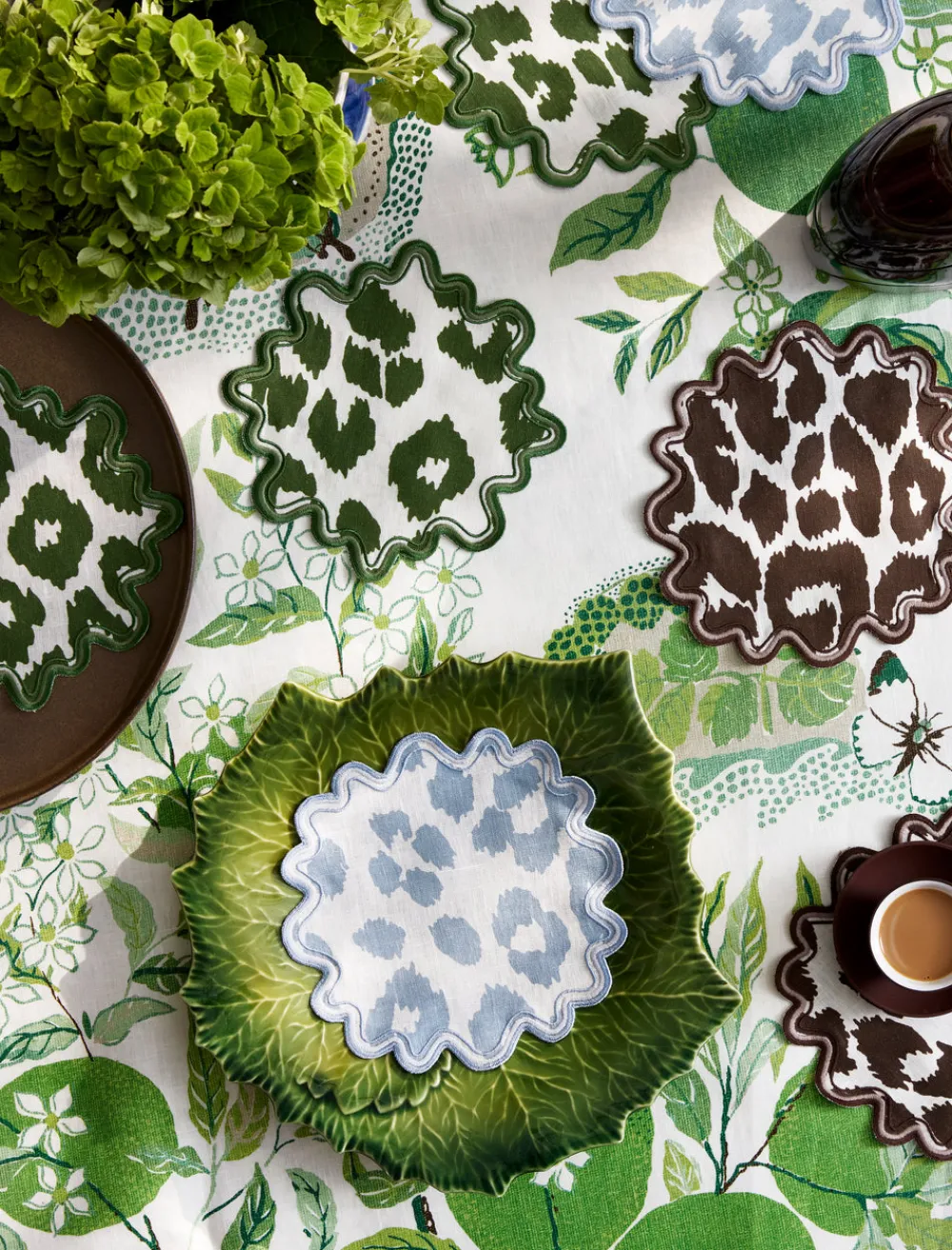 For nearly 100 years and three generations, Matouk has handcrafted luxury linens from the world’s finest materials. Their dedicated artisans in Fall River, Massachusetts are committed to creating the highest quality, most-loved bed, bath, and table linens for your home. The Matouk Schumacher Iconic Leopard Cocktail Napkin features an especially vivacious Schumacher print, dating back to the 1970s. Each napkin in this set of four is finished with a meticulously embroidered, two-color wave border.