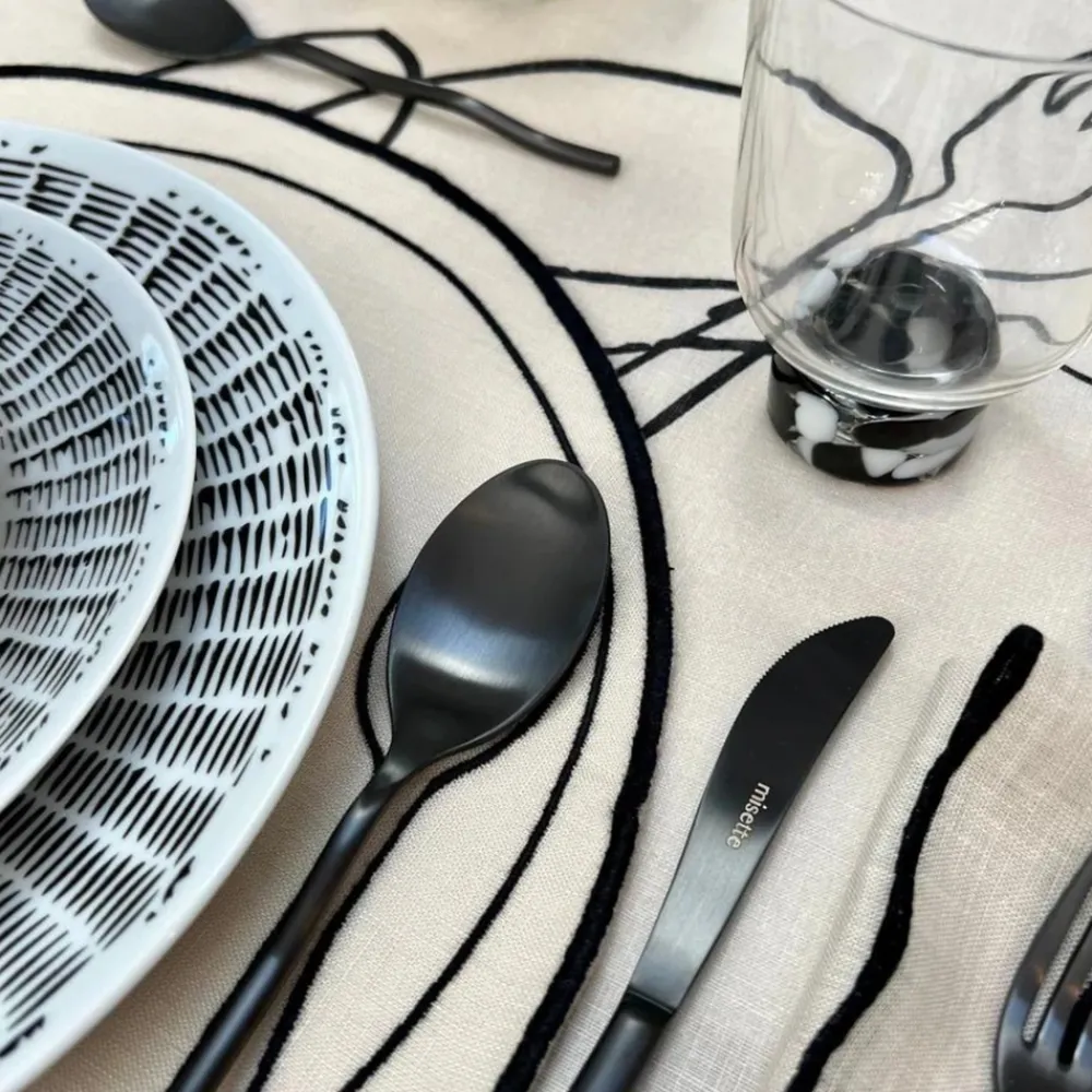 Growing up, Misette co-founders and sisters Sarah Pecaut and Amy Burstyn Fritz’s grandmother told them the highest compliment bestowed upon any host would be about their beautifully set table. The brand is centered around this ethos, treating the tablescape like a blank canvas to be artfully designed. Bring on the basketweave—the Line Drawing Salad Plate adds a little quirk to classic black-and-white tableware with its Picasso-inspired woven print. Hand-drawn then digitized by Misette product designer Leslie Hamilton, the design shines on high-quality Portuguese porcelain.