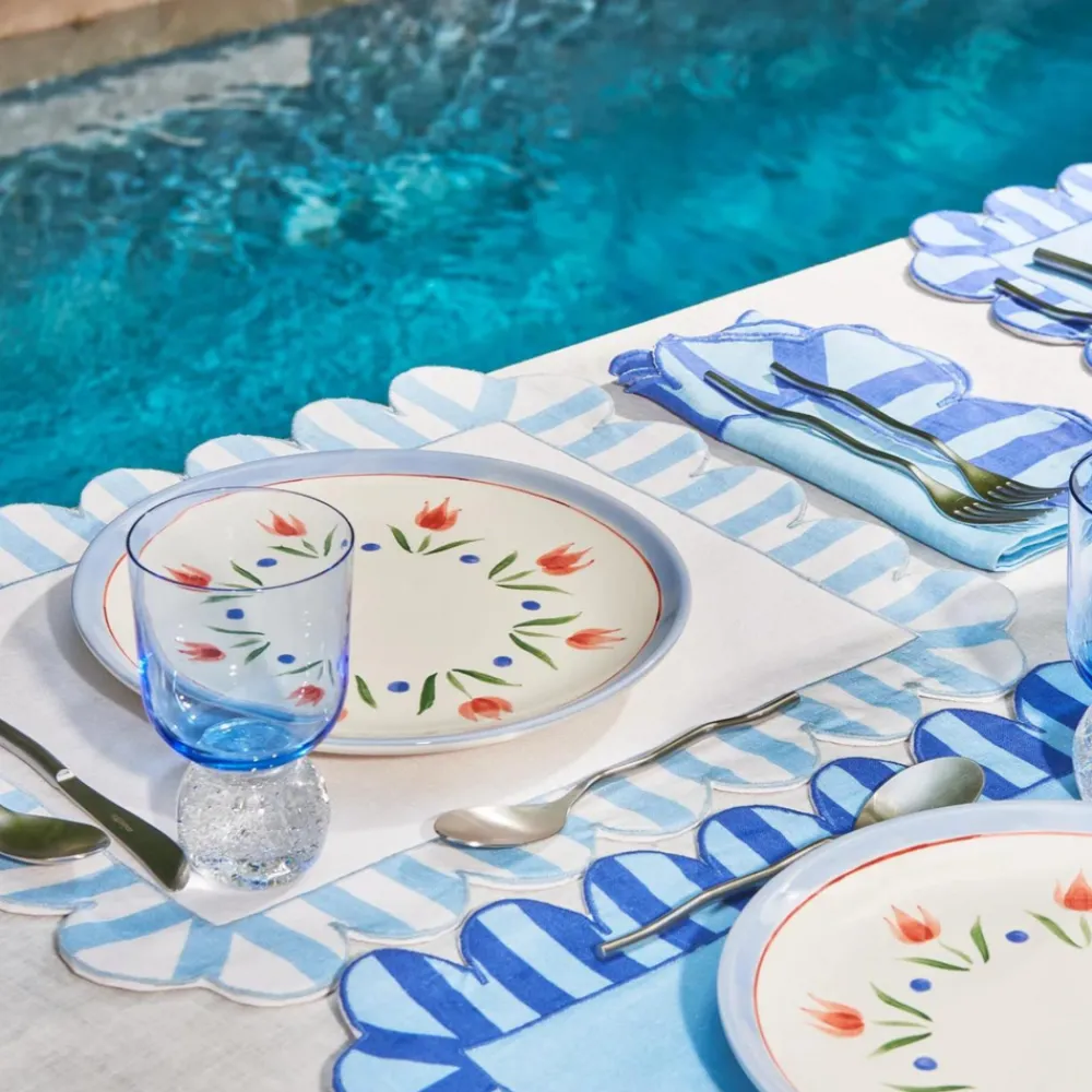 Growing up, Misette co-founders and sisters Sarah Pecaut and Amy Burstyn Fritz’s grandmother told them the highest compliment bestowed upon any host would be about their beautifully set table. The brand is centered around this ethos, treating the tablescape like a blank canvas to be artfully designed. To create a bubbled-glass base—known as pulegoso—Misette adds a dusting of baking soda under molten glass. The result? A one-of-a-kind, light-reflecting design that elevates every sip.