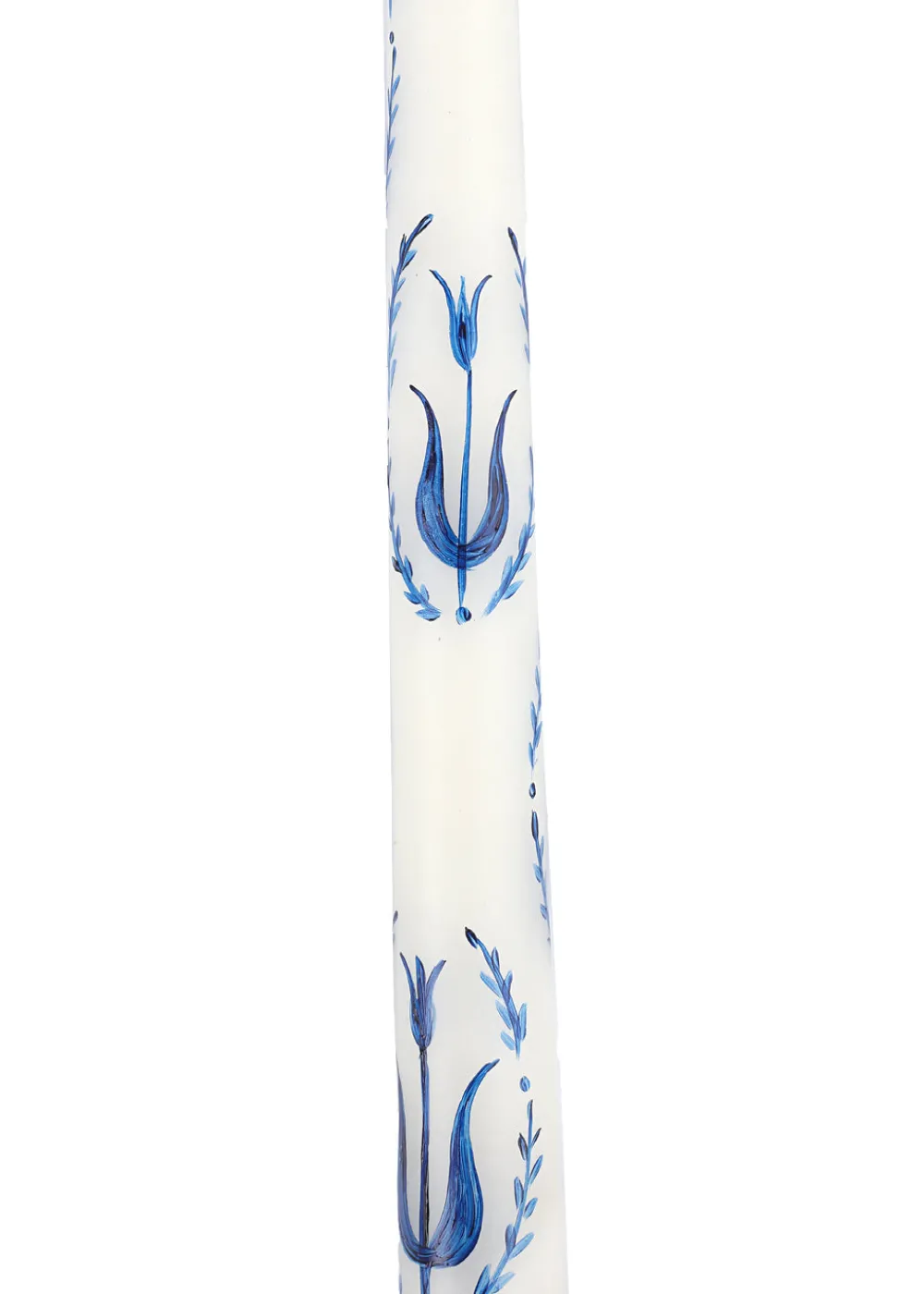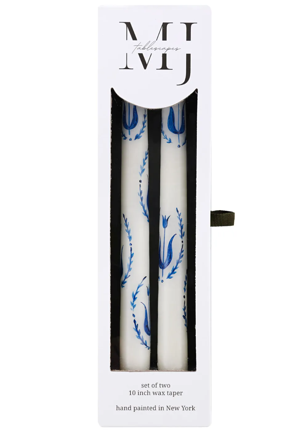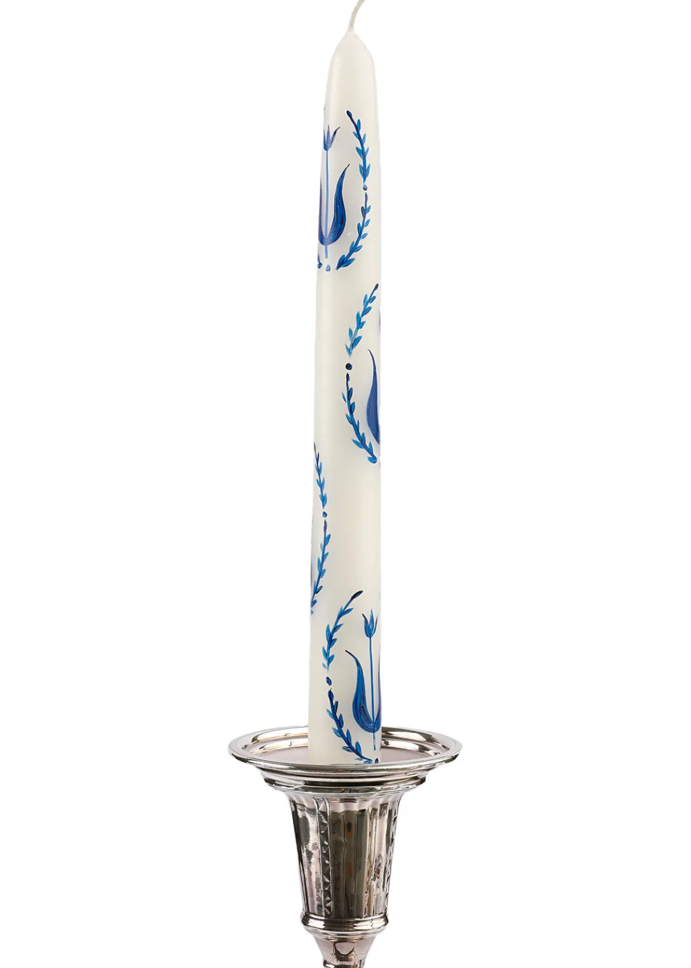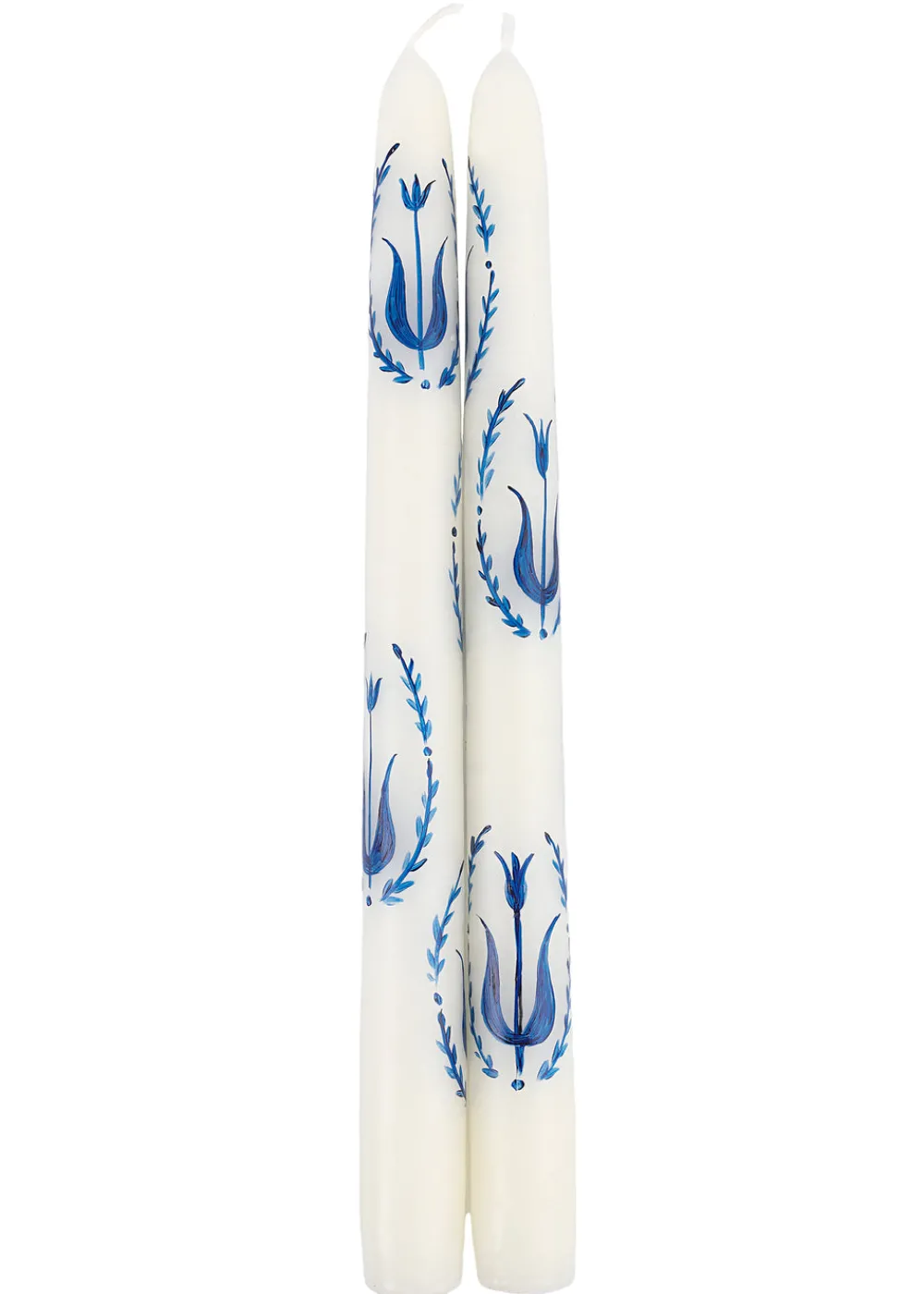 MJ Tablescapes founder Margot Janks believes the dinner table is where we connect. After a career spent launching homewares for brands like Tiffany & Co., she launched her own brand of small-batch, hand-painted candles to illuminate any occasion and bring people together. Adored with dark blue florals and vines, the Blue and White Tulip Taper Candles, Set of Two feature a shell colored base. These elegant tapers add a bit of whimsy to your home, table, and decor.