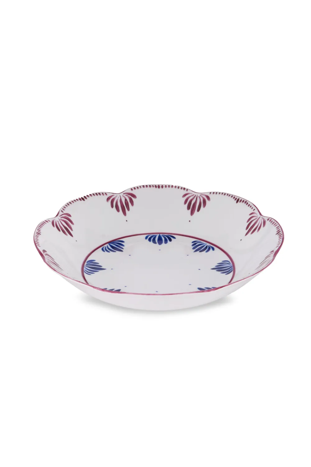 Molecot’s sophistication arrives by way of its founders, three Spanish businesswomen and friends, who sought to augment the art of entertaining with fine tableware. Inspired by trips across the world, fashion, and art, every occasion becomes unique with these pieces’ embrace of both tradition and contemporary style. Featuring a beautiful scalloped border, the Jaipur Rice & Pasta Serving Bowl combines shades of pink and blue with a vibrant pattern encircling the rim. Crafted in Limoges porcelain and hand-painted, this serving bowl is ideally elegant for serving everything from grains and pastas to soups and desserts.