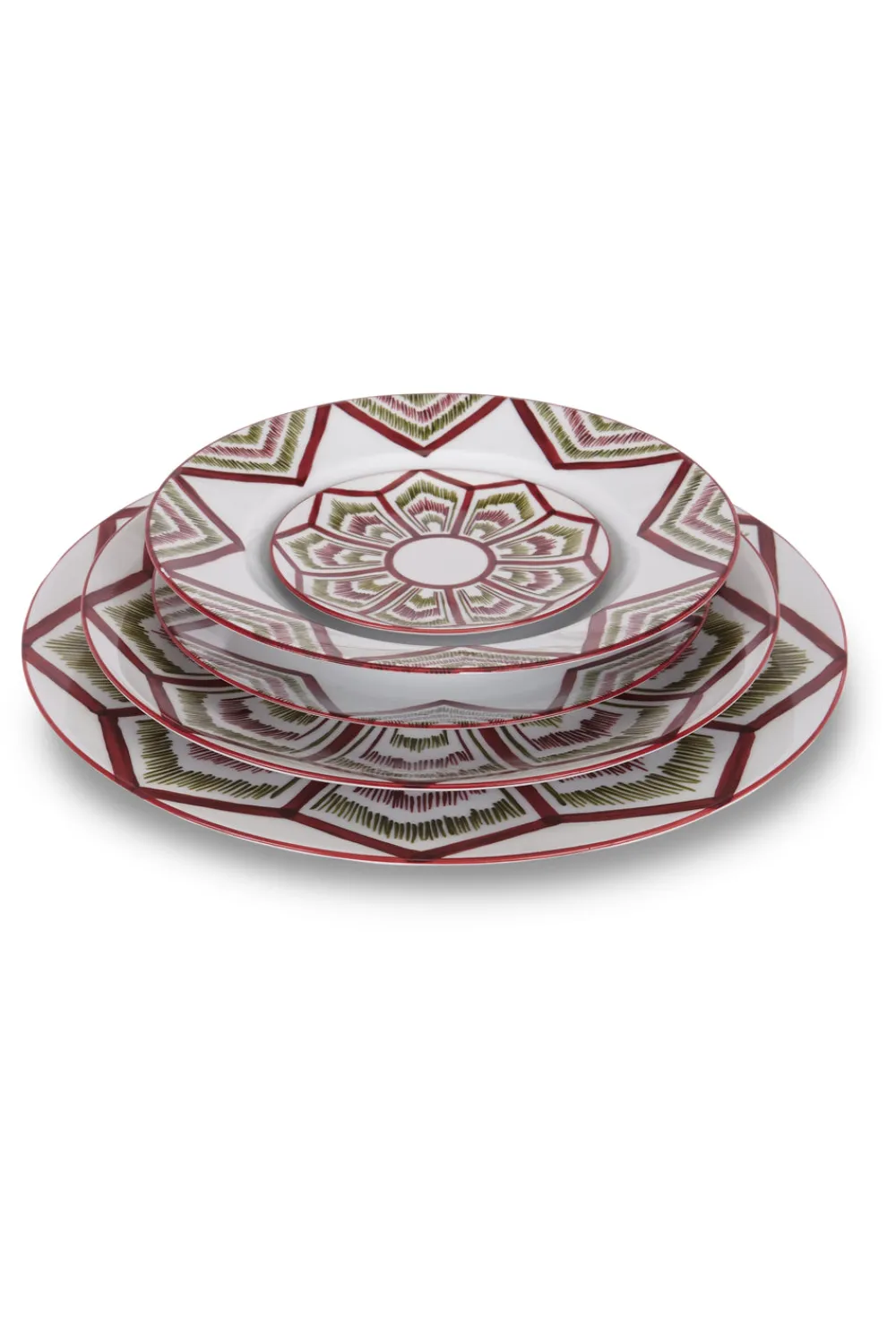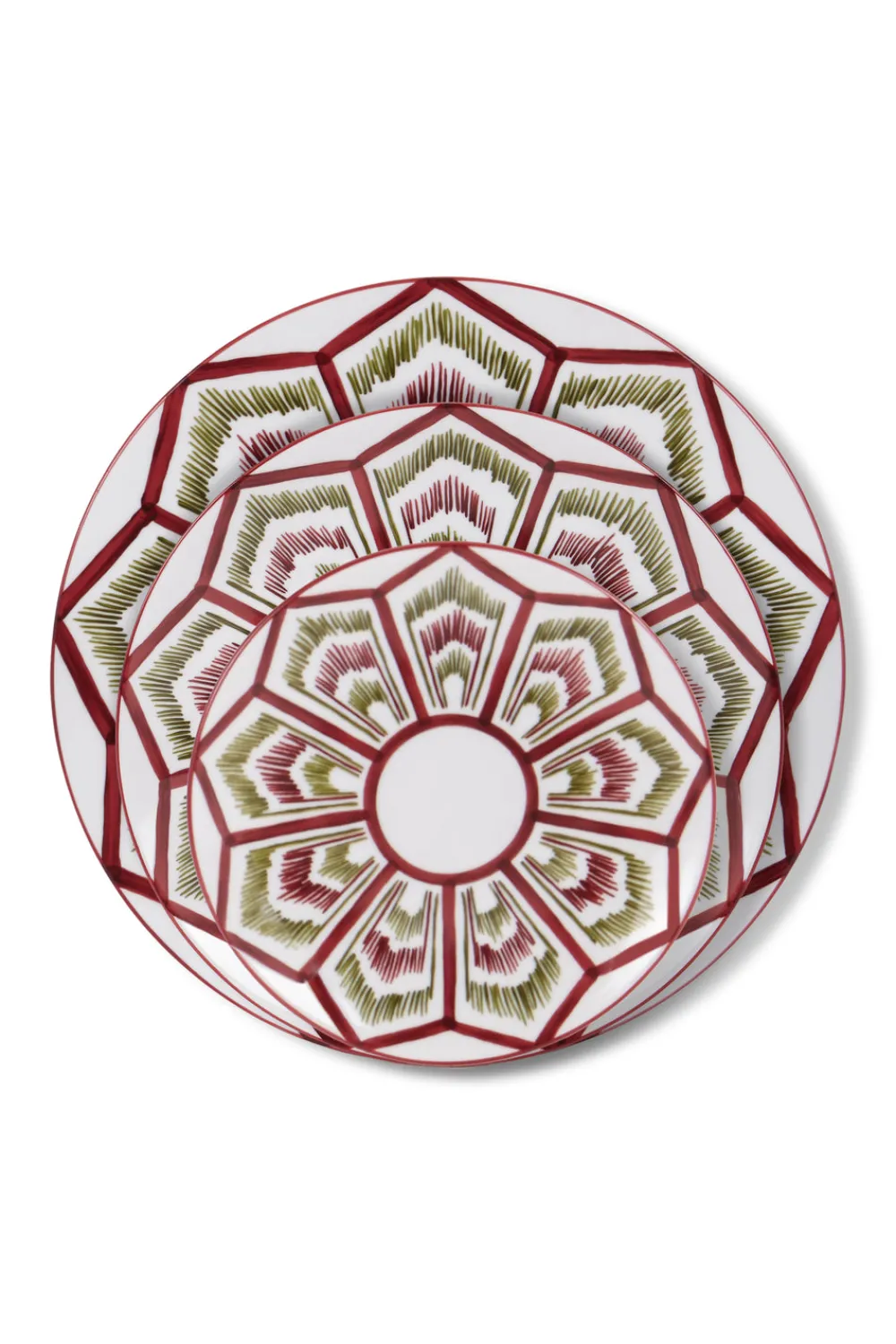 Molecot’s sophistication arrives by way of its founders, three Spanish businesswomen and friends, who sought to augment the art of entertaining with fine tableware. Taking inspiration from trips across the world, fashion, and art, every occasion becomes unique with these pieces’ embrace of both tradition and contemporary style. Inspired by the Majorcan classical fabric of tongues, the Mallorca II Bread Plate features a vibrant burgundy and olive green, characterized by a geometric decoration that evokes an ikat design. Crafted in Limoges porcelain and hand-painted, the Jaipur Bread Plate is ideal for serving small salads, sides, desserts, and of course, bread.