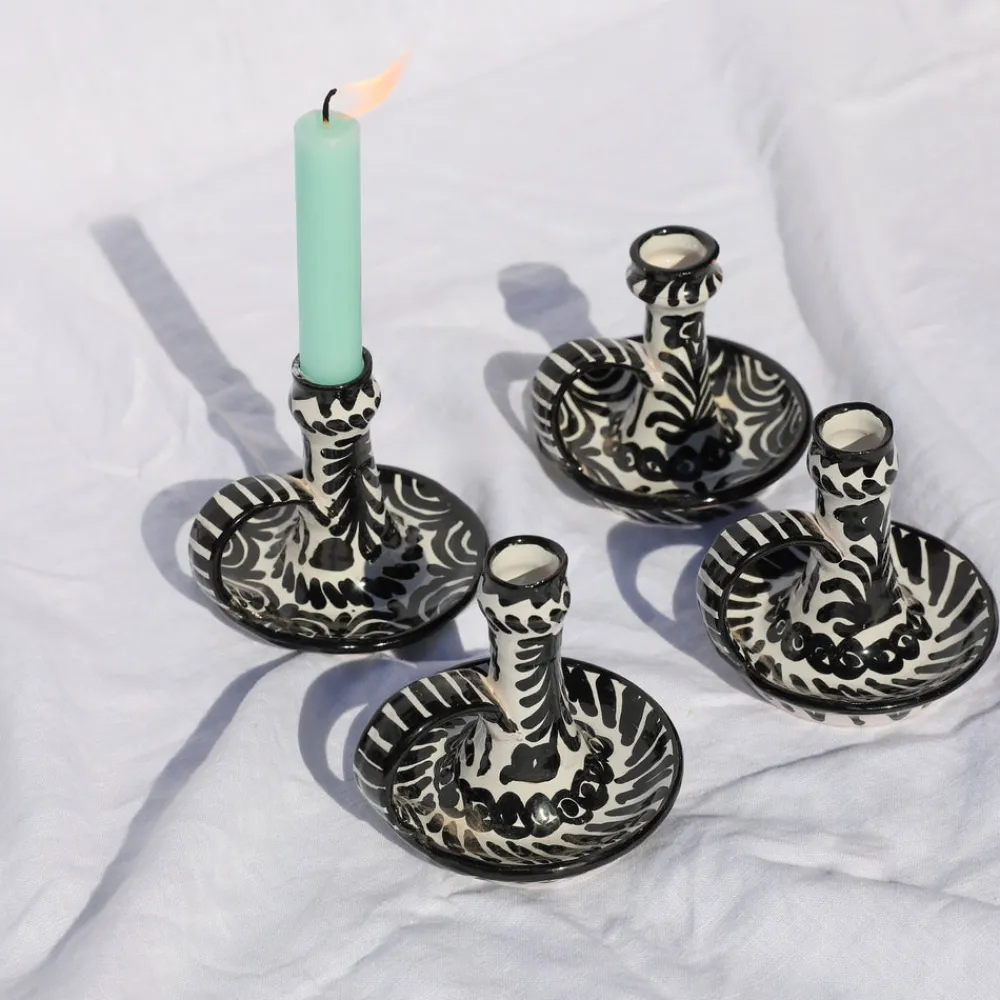 Using ancient techniques and Lebrillo motifs that date back to the 16th century, each Pomelo Casa piece is handmade and hand-painted by only five small, family-run workshops in Granada. For the first time, they are being exported outside of Europe, so that the gorgeous, simple, timeless patterns of Southern Spain can be shared with the world, making it brighter in the process. The Casa Blanca & Negra Candlestick with Hand-Painted Designs features a delightful pattern, in classic black and white. Perfect for an evening meal, indoors or out. Because of their handmade nature, each piece may have a slight variation in pattern as a result. Minor imperfections are not considered flaws but instead add to the authenticity and charm of these beautiful home goods.