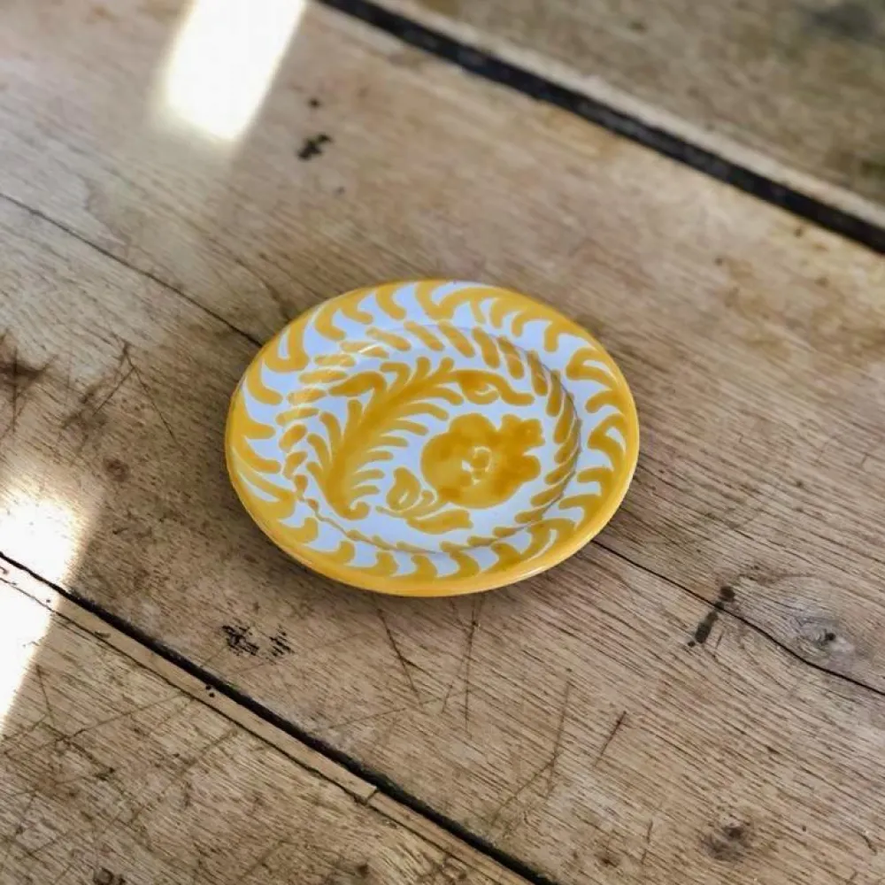 Hand-painted with a traditional Spanish “Lebrillo” design featuring pomegranates, the Casa Amarilla Mini Plate is subtly striking and well-suited for dining, table decoration, or as wall decor. (There are two holes on the back that make for easy hanging.) Each Pomelo Casa piece is handmade in Southern Spain by ceramicists who have been using the same techniques for over five centuries and may have a slight variation in pattern as a result. Minor imperfections are not considered flaws but instead add to the authenticity and charm of these beautiful home goods.