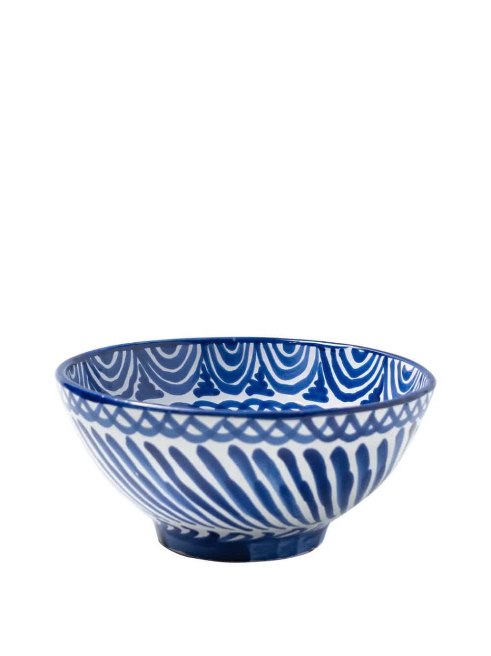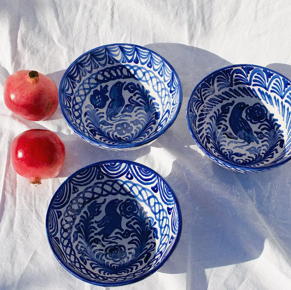 Hand-painted with a traditional Spanish “Lebrillo” design featuring birds and pomegranates, the Casa Azul Medium Bowl is subtly striking and well-suited for dining, table decoration, or as wall decor. (There are two holes on the back that make for easy hanging.) Each Pomelo Casa piece is handmade in Southern Spain by ceramicists who have been using the same techniques for over five centuries and may have a slight variation in pattern as a result. Minor imperfections are not considered flaws but instead add to the authenticity and charm of these beautiful home goods.