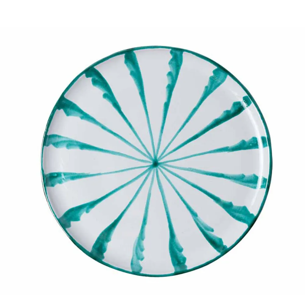 Hand-painted with candy cane stripes, the Casa Verde Dinner Plate is subtly striking and well-suited for dining, table decoration, or as wall decor. (There are two holes on the back that make for easy hanging.) Each Pomelo Casa piece is handmade in Southern Spain by ceramicists who have been using the same techniques for over five centuries and may have a slight variation in pattern as a result. Minor imperfections are not considered flaws but instead add to the authenticity and charm of these beautiful home goods.