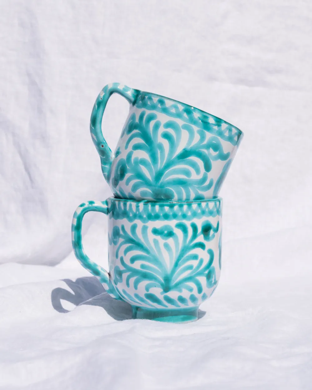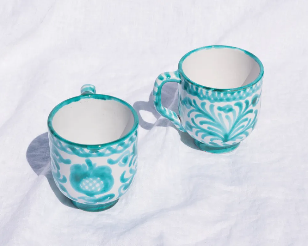 Hand-painted with a traditional Spanish design featuring birds and flowers, the Casa Verde Mug is subtly striking and well-suited for drinking or table decor. Each Pomelo Casa piece is handmade in Southern Spain by ceramicists who have been using the same techniques for over five centuries and may have a slight variation in pattern as a result. Minor imperfections are not considered flaws but instead add to the authenticity and charm of these beautiful home goods.