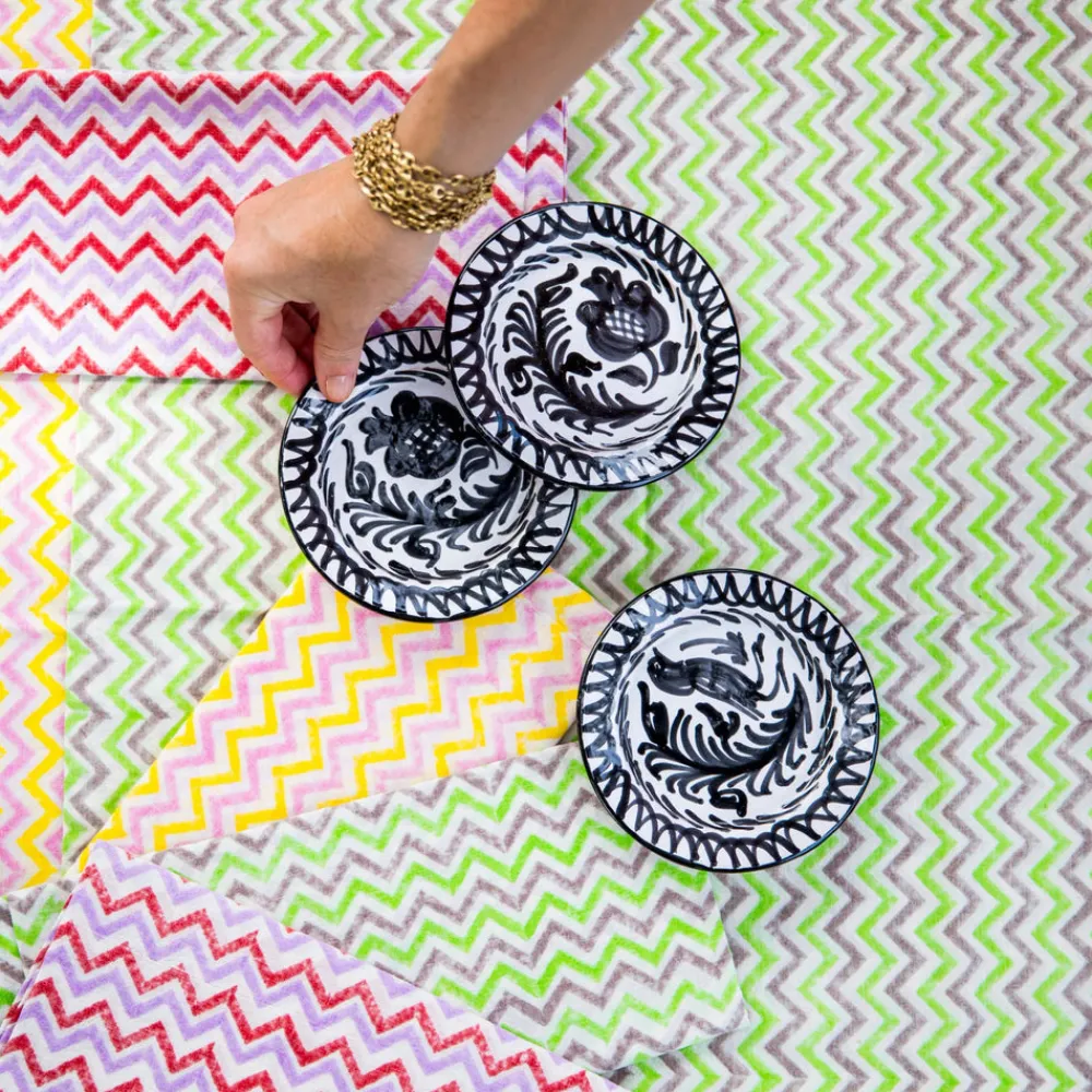 Using ancient techniques and Lebrillo motifs that date back to the 16th century, each Pomelo Casa piece is handmade and hand-painted by only five small, family-run workshops in Granada. For the first time, they are being exported outside of Europe, so that the gorgeous, simple, timeless patterns of Southern Spain can be shared with the world, making it brighter in the process. The Mini Plate With Hand Painted Designs in black and white is the bold graphic every tableware collection needs. Use it for food prep, as a coaster, or even a candle holder.