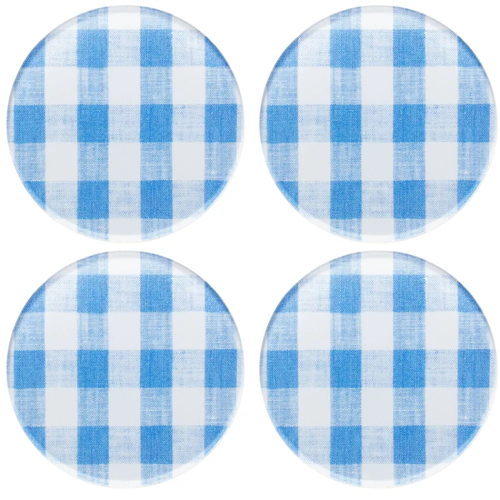 Proper Table’s placemats and linens bring festive style to every tabletop. Easy to wash and care for, these versatile linens will delight diners no matter the occasion. The Mack Blue Gingham motif is a classic and elegant addition to mealtimes and cocktail hours. With this set of four coasters, you can protect and enliven your table indoors and out.