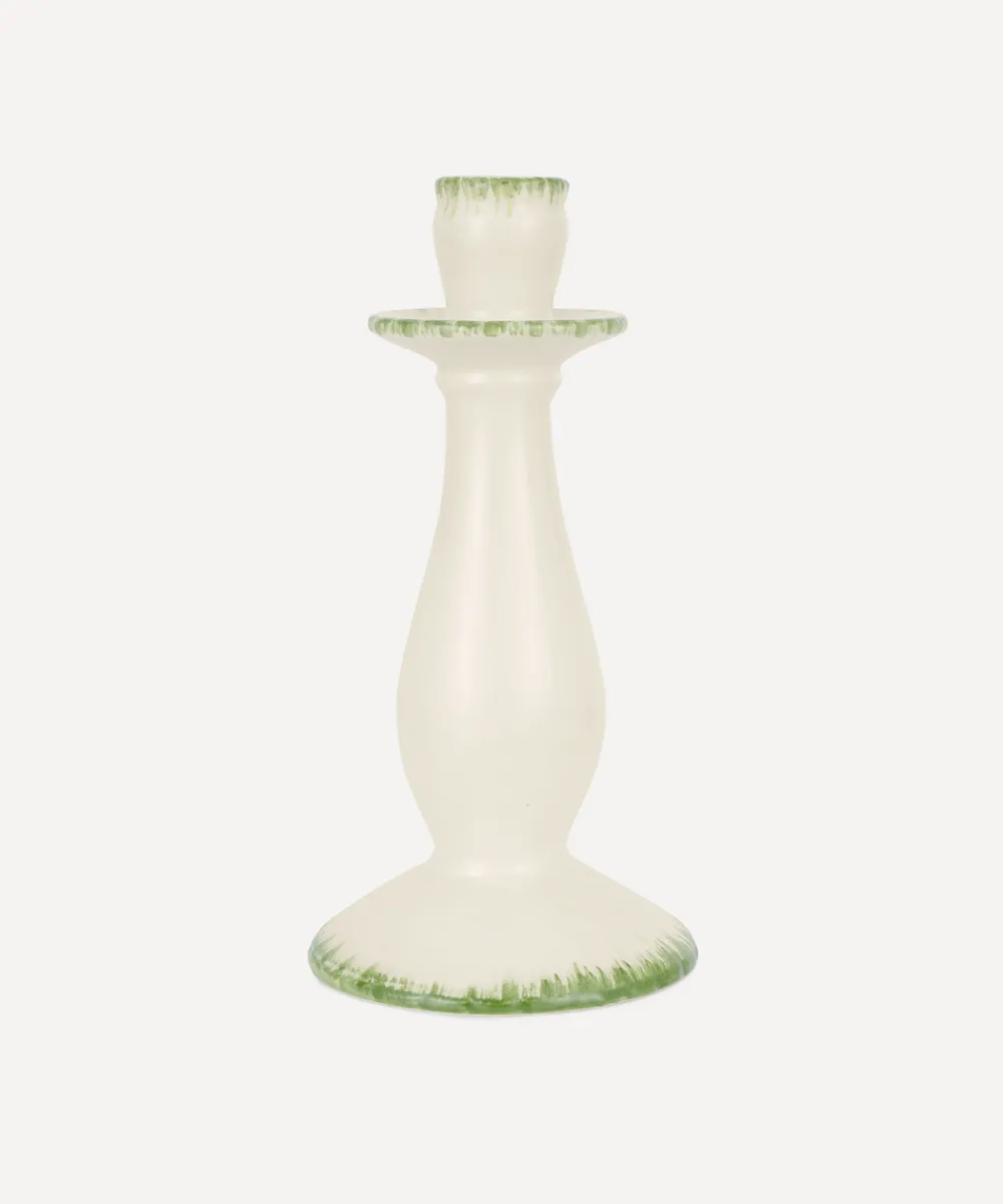 A belief in buying less, and better, leads Rebecca Udall to the finest materials and most capable makers for her luxe linens and homewares. Focusing on provenance, longevity and timelessness, these are investment pieces that can elevate any table, room, or home. Individually hand-painted with a vintage-inspired design, the Daisy Candlestick in Leaf Green adorns mantelpieces and tables with candlelight. A classic design with just enough detail to seamlessly fit into various décor styles and table settings.