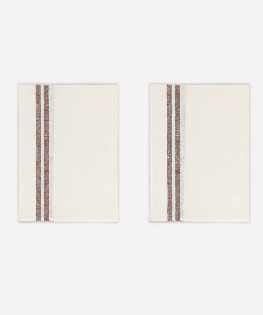 A belief in buying less, and better, leads Rebecca Udall to the finest materials and most capable makers for her luxe linens and homewares. Focusing on provenance, longevity and timelessness, these are investment pieces that can elevate any table, room, or home. Boasting a generous size with a hanging loop, the Pair of Striped Linen Tea Towels in Chocolate, Set of 2 is naturally moth resistant, antibacterial, lint free and fast drying.