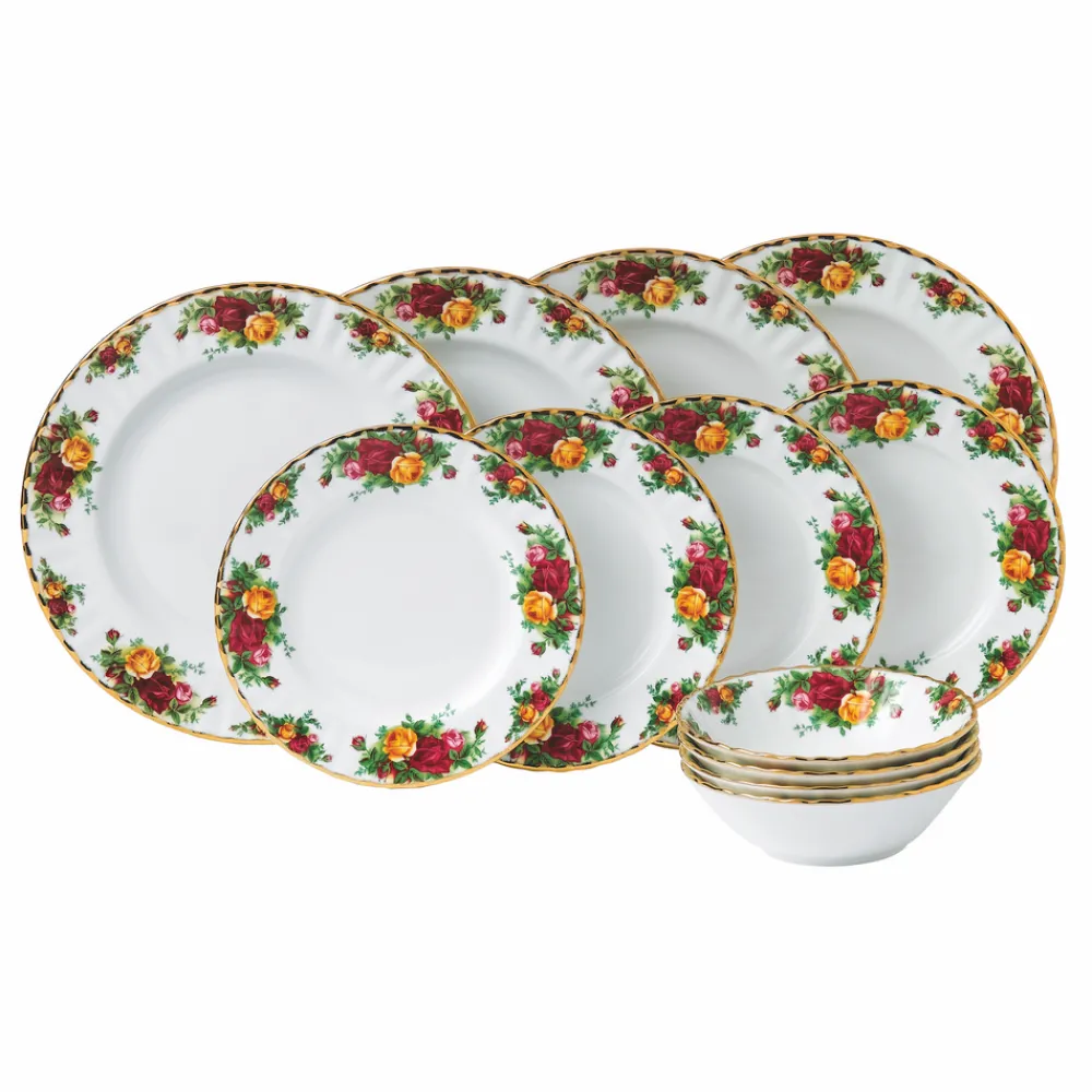 Crafting fine bone china tea ware since 1904, Royal Albert adds a unique touch of cheeky, feminine fun to all things quintessentially English. Embracing vintage touches and and florals, particularly the English country garden variety, brand’s range of dishware is made with the best materials and in the finest tradition. The best-selling dinnerware pattern, Old Country Roses pattern is synonymous with the name Royal Albert and timeless craftsmanship. With four dinner plates, four salad plates, and 4 cereal bowls, rhe Old Country Roses, 12 Piece Set provides a classic base for any dining situation.