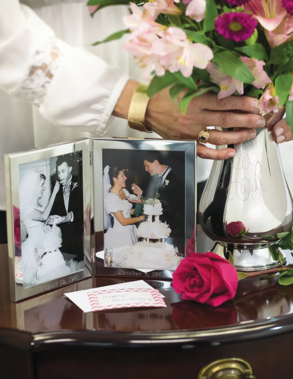 Weddings, births, anniversaries, a new home—Salisbury makes heirloom gifts for all the most special occasions. Family-owned and artisan led, the company’s pewter, sterling, and cast metal work items elevate any room, household, or party with unforgettable prestige and unending charm. With a simple, gorgeous border, the 5×7″ Double Frame is an ideal home for your most treasured photographic memories.