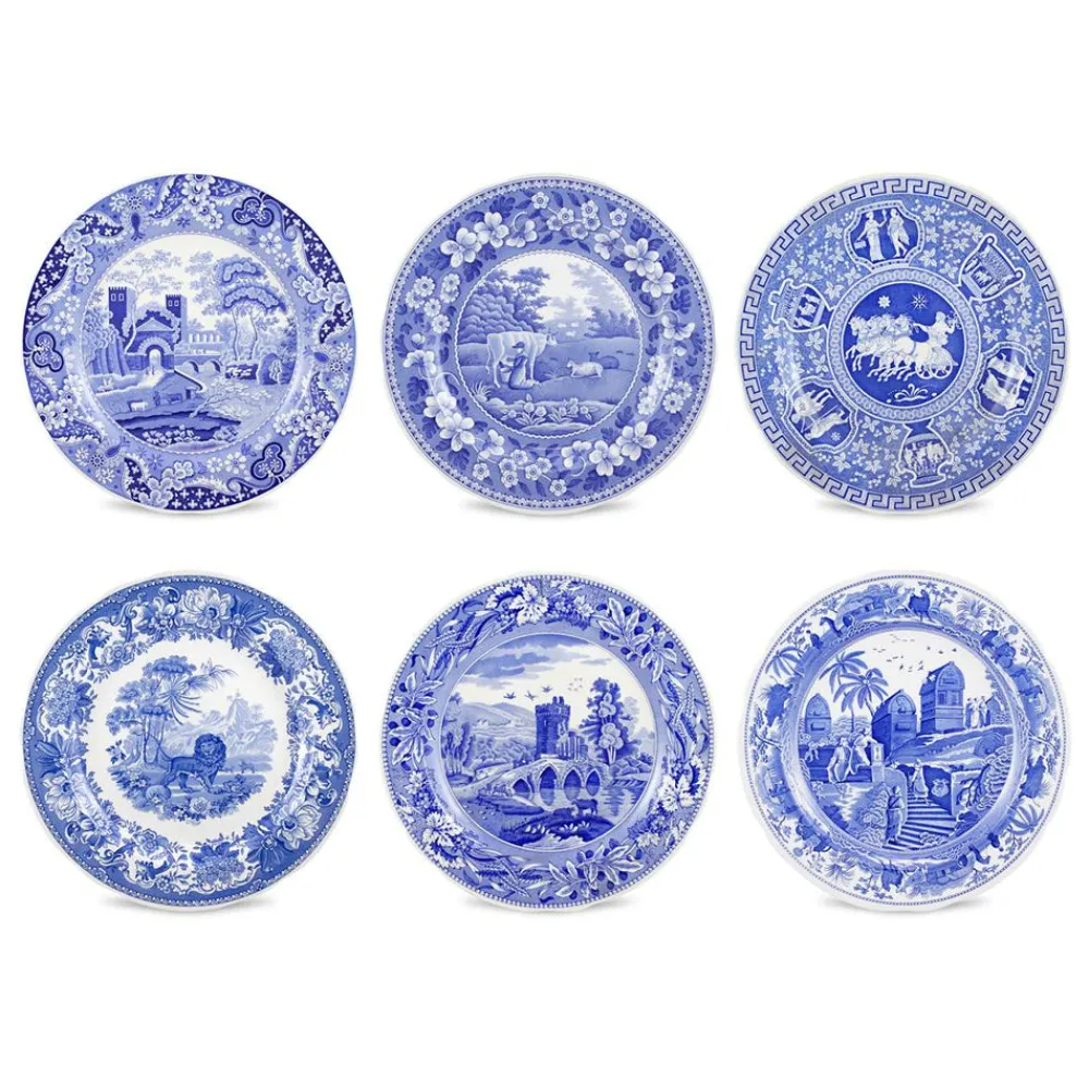 Founded by Josiah Spode in 1770, Spode has been producing the finest ceramics and celebrated designs in Stoke-on-Trent, England for over 250 years. The Blue Room collection celebrates centuries of craftsmanship by showcasing archival patterns from Spode’s design vault. The Assorted Traditions Plates Set features six unique motifs, each reflecting a traditional Spode design, printed in the iconic blue-and-white colorway. A striking addition to the table or wall, this curated set blends timeless artistry with collectable appeal.