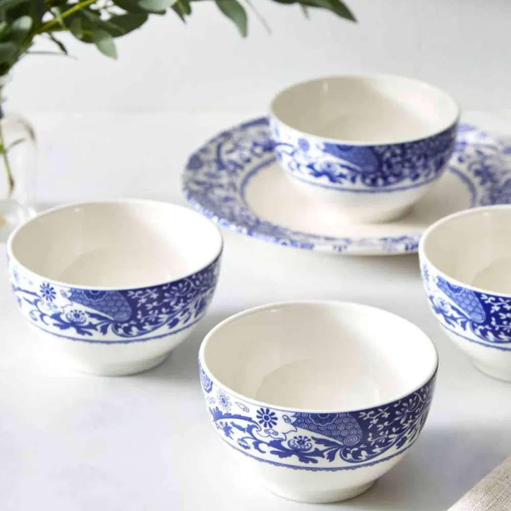 Founded by Josiah Spode in 1770, Spode has been producing the finest ceramics and celebrated designs in Stoke-on-Trent, England for over 250 years. The Blue Room collection brings archival patterns to life, preserving the beauty of traditional English craftsmanship. These 4″ Dip Bowls, offered as a set of four, feature the Brocato collection’s signature scrollwork and floral detailing. Ideal for serving dips, sauces, nuts, or small bites, they blend function with timeless elegance.
