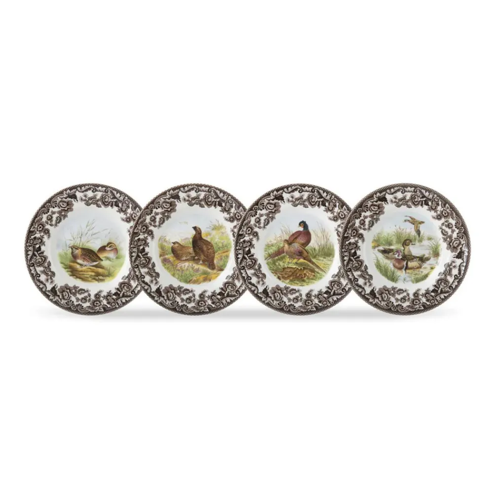 Founded by Josiah Spode in 1770, Spode has been producing the finest ceramics and celebrated designs in Stoke-on Trent, England for 250 years. Spode is the authority on great British style bringing heritage style to modern day life. The Woodland Canape Plates, Set of 4 Birds features a Red Grouse, a Pheasant, a Quail, and a Wood Duck with an intricate brown Victorian-style floral border.