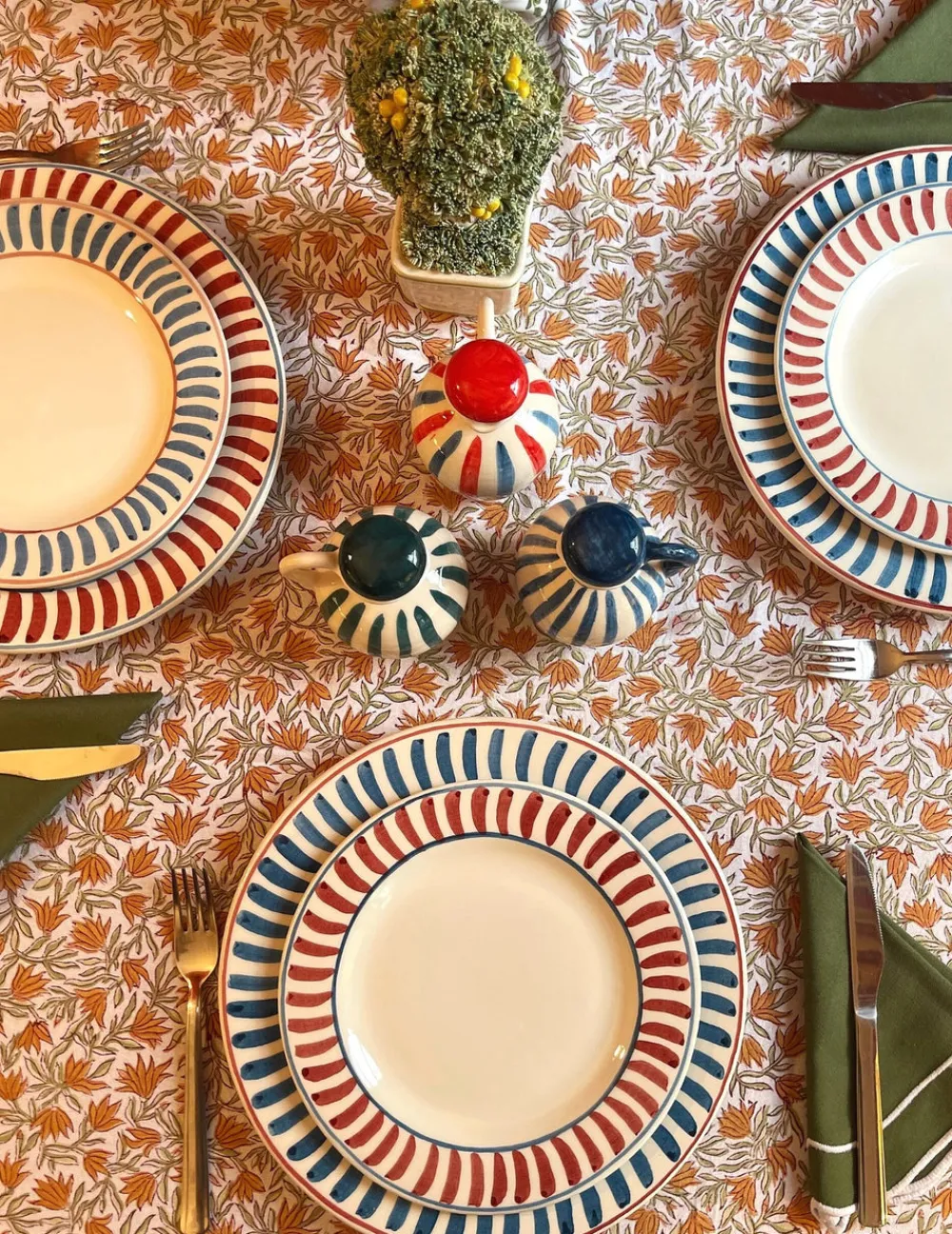 London-based Sveva Clavarino, whose Wellness Reporter platform offers everything from luxury trips to natural skincare products, curates Sveva’s Home from her experiences traveling the globe. The refinement of her handmade, artisanal ceramics and tabletop items is balanced by cheeky expressions, guaranteed to delight your guests. Each example of the Red, White Blue Olive Oil and Vinegar Bottle, Set of 2 is hand-painted, one by one, in Italy, making it a sophisticated and singular conduit for your favorite additives.
