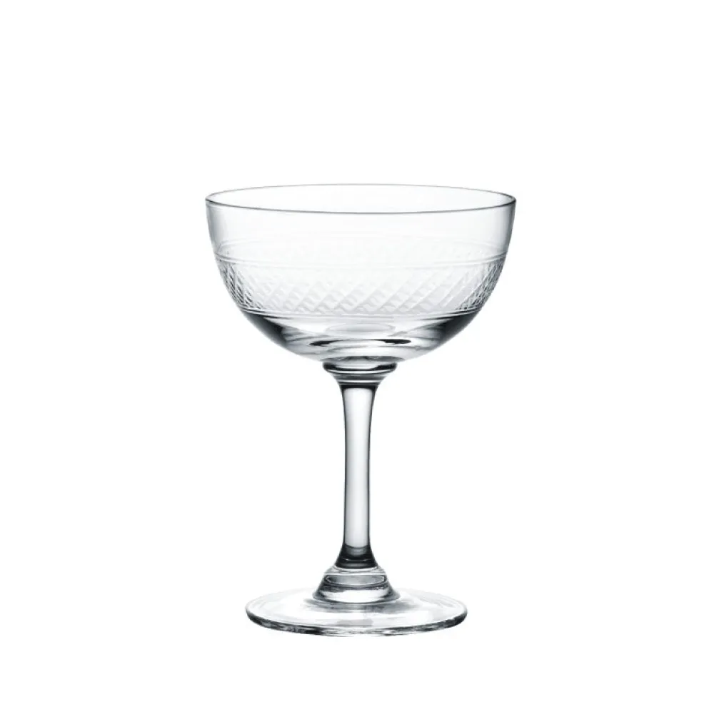 Founded in 2015 by former antiques dealers Camilla and Henry Davies, London-based The Vintage list reproduces the timeless glassware the Davies once found in English antique markets. Their hand-blown, engraved pieces turn any cocktail hour or meal into a special occasion, and yet these glasses are designed to be used every day, and sit beautifully in any contemporary setting. A heavenly champagne coupe, the Crystal Champagne Saucers with Bands Design features hand-cut latticed bands, that add symmetry and beauty to every toast and sip.