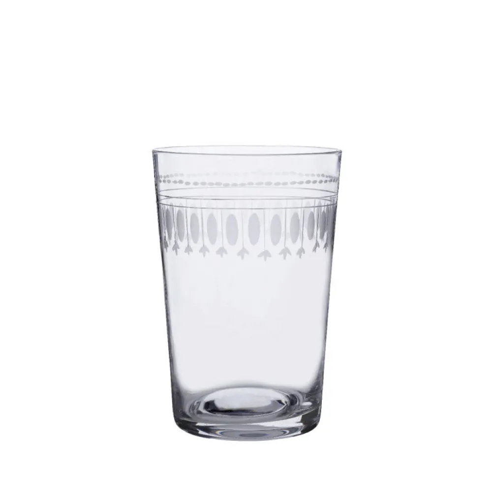 Fine crystal. Each glass has been hand-blown and hand-engraved.