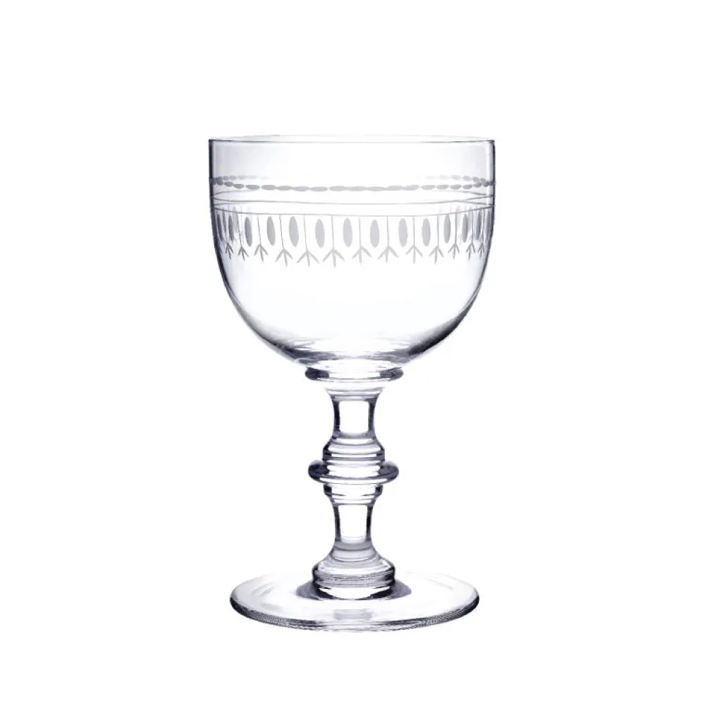 Fine crystal. Each glass has been hand-blown and hand-engraved.