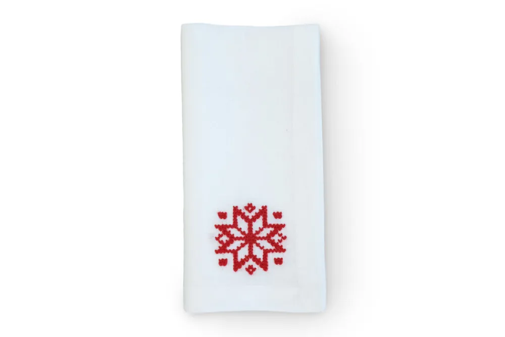 Founded in 2020 by three friends, TriChi looks to the intersection of the Mediterranean, Atlantic, and Anatolia for the inspiration for their superior clothing and homewares. Environmentally friendly manufacturing, the highest quality fabrics, and a passion for great design combine in the brand’s uniquely tasteful approach. TriChi’s napkins and placemat sets are exemplary tabletop additions, regardless of how formal or casual the affair. The Red Snowflake Napkin presents itself with festive, subtle winter detailing.