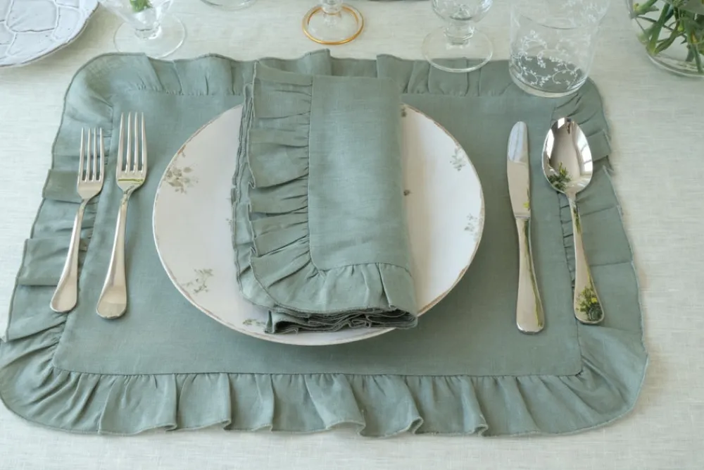 Founded in 2020 by three friends, TriChi looks to the intersection of the Mediterranean, Atlantic, and Anatolia for the inspiration for their superior clothing and homewares. Environmentally friendly manufacturing, the highest quality fabrics, and a passion for great design combine in the brand’s uniquely tasteful approach. TriChi’s linen napkins are exemplary tabletop additions, regardless of how formal or casual the affair. The Ruffles Sea Sonen Napkin, Set of 4, present themselves in a gorgeous shade of deep green—and are elegantly decorated with a gently ruffled edge.