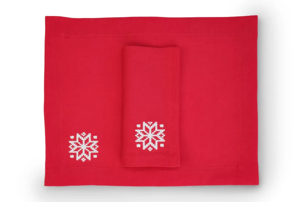 Founded in 2020 by three friends, TriChi looks to the intersection of the Mediterranean, Atlantic, and Anatolia for the inspiration for their superior clothing and homewares. Environmentally friendly manufacturing, the highest quality fabrics, and a passion for great design combine in the brand’s uniquely tasteful approach. TriChi’s napkins and placemat sets are exemplary tabletop additions, regardless of how formal or casual the affair. The White Snowflake Napkin and Placemat, Set of 2 presents itself in vivid red with a wintry accent.
