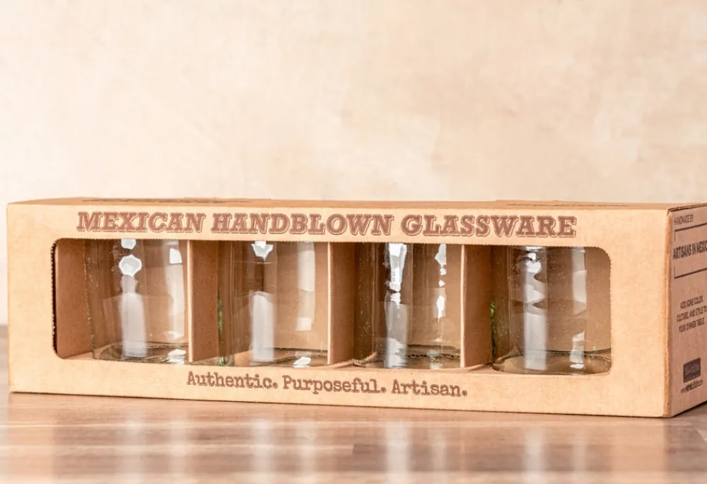 Set of 4. 100% recycled, lead-free glass. Hand-blown in Mexico.
