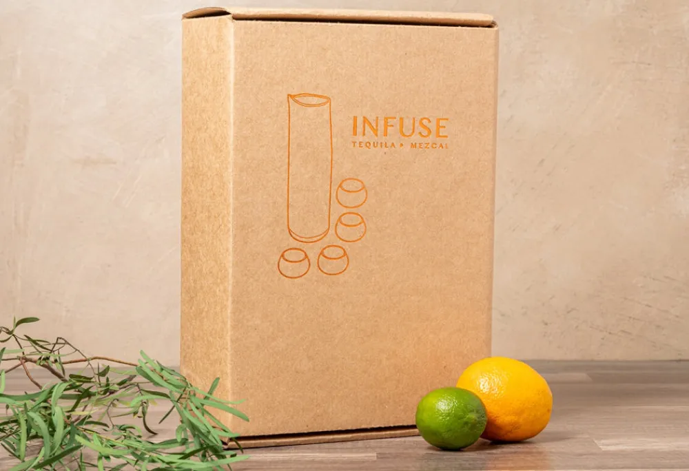 Packaged in a beautiful craft gift box with copper details, there are infusion recipes and suggestions printed inside. Though this set was inspired by tequila and mezcal, experimenting with infusing spirits and drinks of any kind is encouraged. Hand-blown in Mexico.
