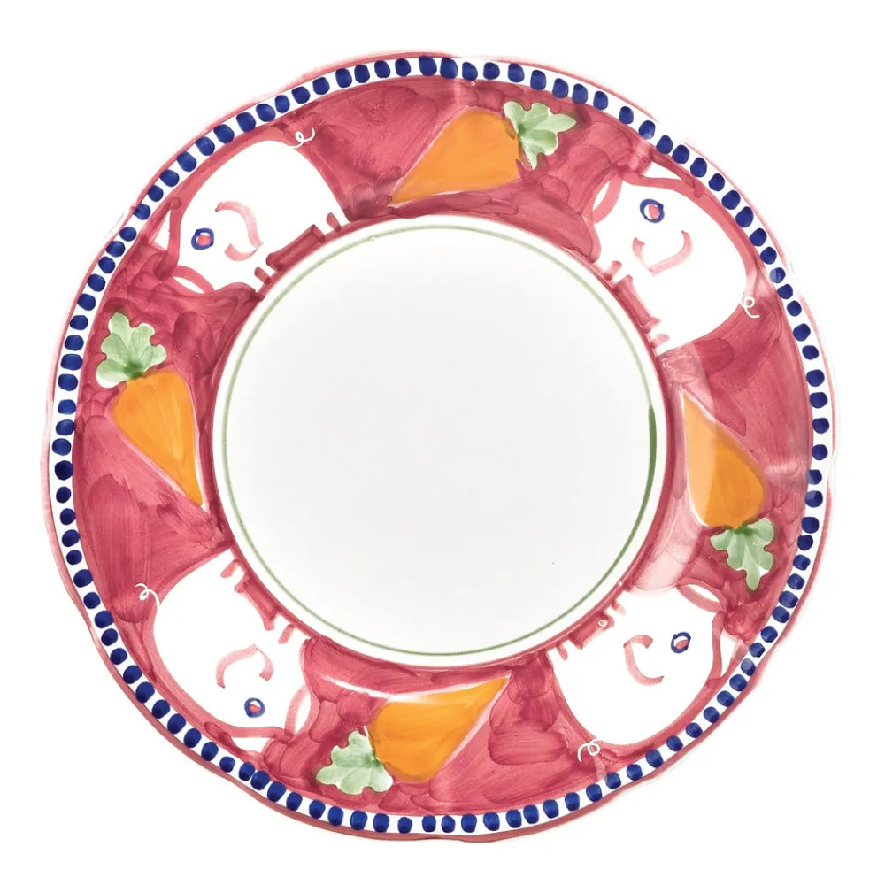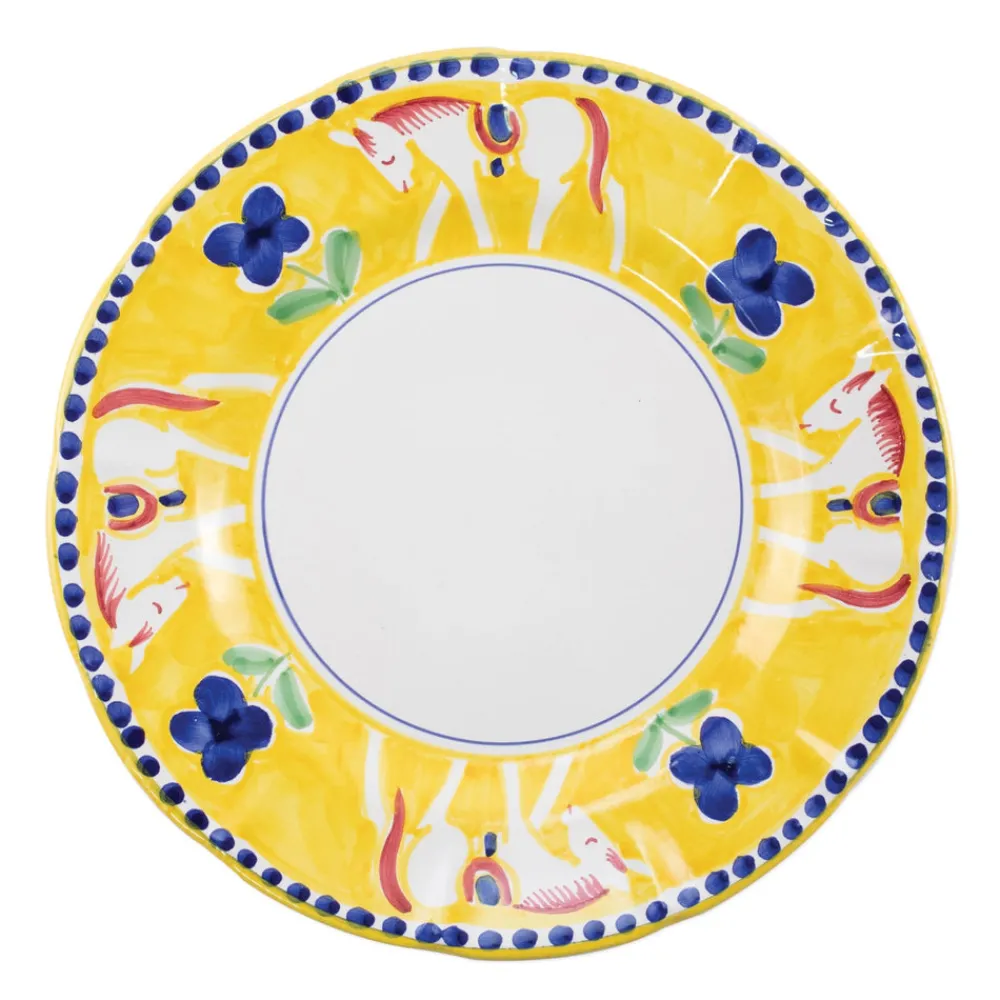 Inspired by Italian lifestyle, history, and culture, VIETRI uses the highest-quality clays from the soil of Italy’s countryside to produce beautiful, everyday items for your home. Hand-painted details, quality glazes, and fine craftsmanship help you savor the moments spent at your table, and the company of those who join it. This collection calls out to the Amalfi coast with rich colors and whimsical designs of farmland fauna. The Campagna Service Plate/Charger is a lively, sophisticated way to serve your favorite mains, like pastas, or steak Florentine off the grill.