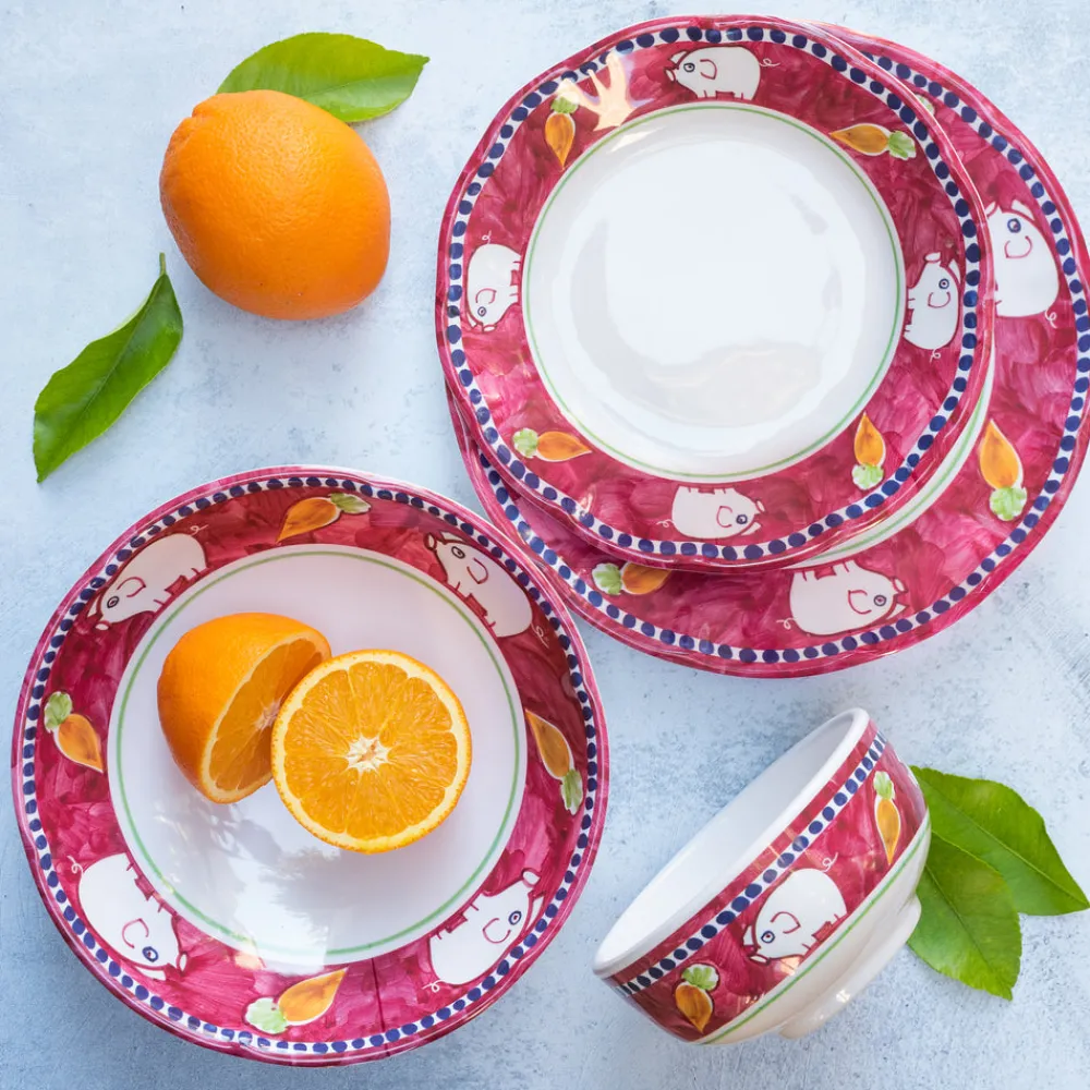 Includes one of each: small bowl, large bowl, salad plate, and dinner plate. Melamine. Made in the Philippines.