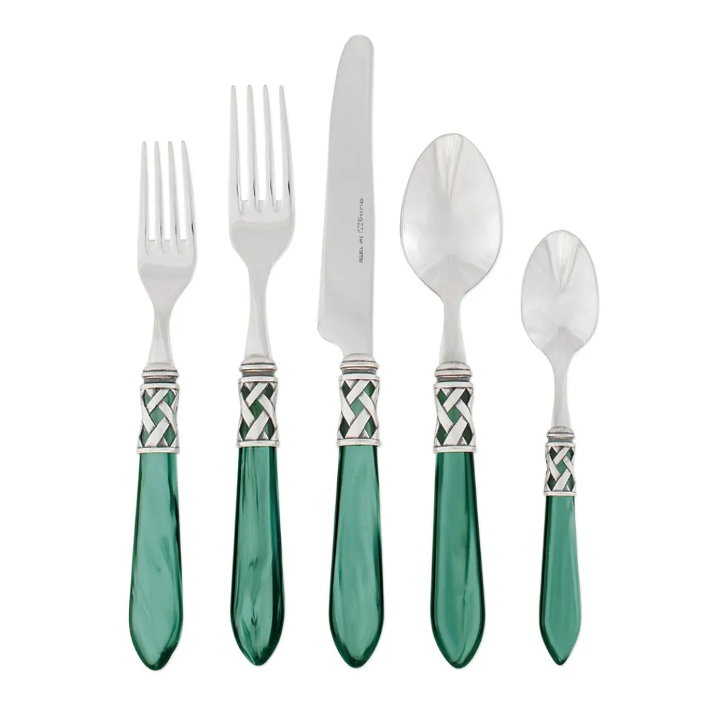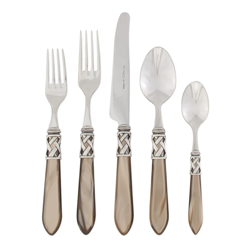 Inspired by Italian lifestyle, history, and culture, VIETRI uses the highest-quality clays from the soil of Italy’s countryside to produce beautiful, everyday items for your home. Hand-painted details, quality glazes, and fine craftsmanship help you savor the moments spent at your table and the company of those who join it. Featuring pearlized handles, wrapped with intricate lattice metalwork, the Aladdin Antique Five-Piece Place Setting is at once versatile and elegant, elevating any dinner service.