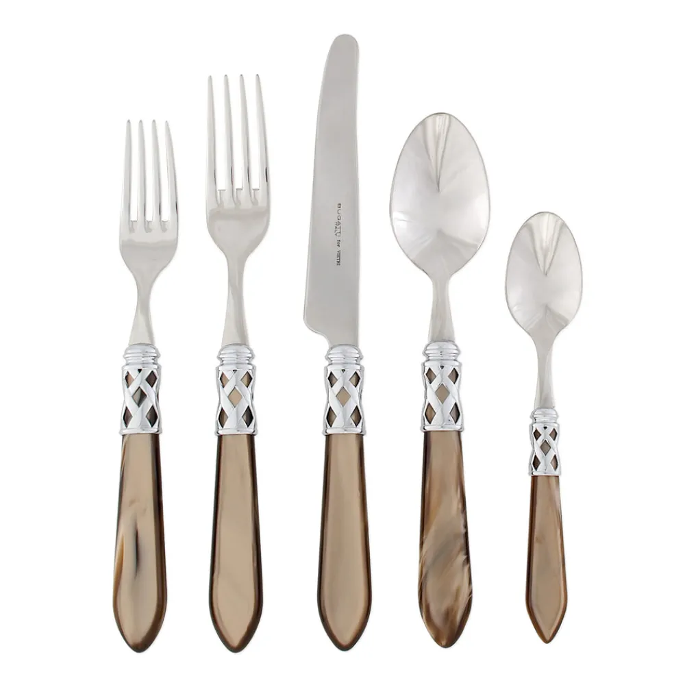 Inspired by Italian lifestyle, history, and culture, VIETRI uses the highest-quality clays from the soil of Italy’s countryside to produce beautiful, everyday items for your home. Hand-painted details, quality glazes, and fine craftsmanship help you savor the moments spent at your table and the company of those who join it. Featuring pearlized handles wrapped with intricate lattice metalwork, the Aladdin Brilliant Five-Piece Place Setting is at once versatile and elegant, elevating any dinner service.