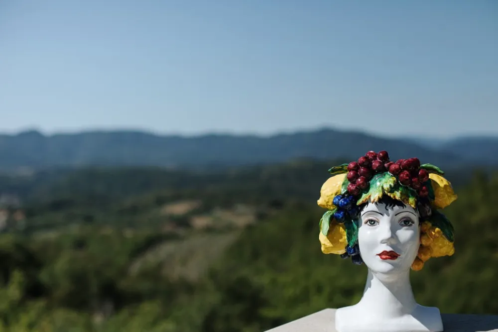 Inspired by Italian lifestyle, history, and culture, VIETRI uses the highest-quality clays from the soil of Italy’s countryside to produce beautiful, everyday items for your home. Hand-painted details, quality glazes, and fine craftsmanship help you savor the moments spent at your table and the company of those who join it. The Sicilian Heads Assorted Fruit Head features a beautiful woman with grapes, lemons, and berries adorning her head. Sicily has a tradition of displaying female sculptural heads, and they are often used as planters on doorsteps, porches, and balconies.