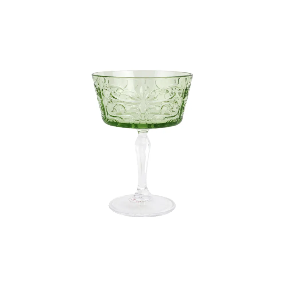 Inspired by Italian lifestyle, history, and culture, VIETRI uses the highest-quality clays from the soil of Italy’s countryside to produce beautiful, everyday items for your home. Hand-painted details, quality glazes, and fine craftsmanship help you savor the moments spent at your table and the company of those who join it. Inspired by 17th century Baroque, the Barocco series is crafted with exquisitely and intricate etchings to accompany their refreshing colors. The Barocco Mint Green Coupe Champagne Glass is a stately, elegant form from which to enjoy and serve your favorite bubbles.