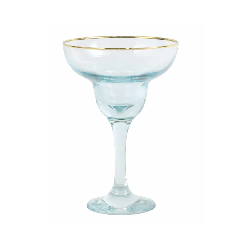 Inspired by Italian lifestyle, history, and culture, VIETRI uses the highest-quality clays from the soil of Italy’s countryside to produce beautiful, everyday items for your home. Hand-painted details, quality glazes, and fine craftsmanship help you savor the moments spent at your table and the company of those who join it. The Rainbow Margarita Glass adds sparkle to any setting with a gilded gold rim and varied colored glass that refracts light.